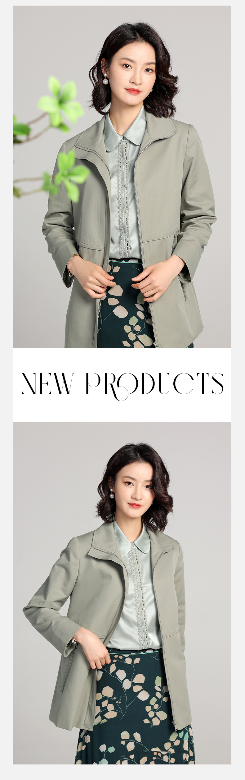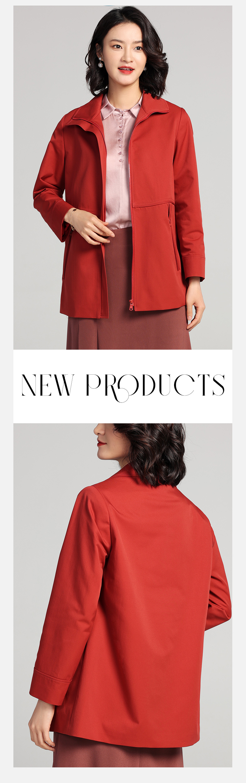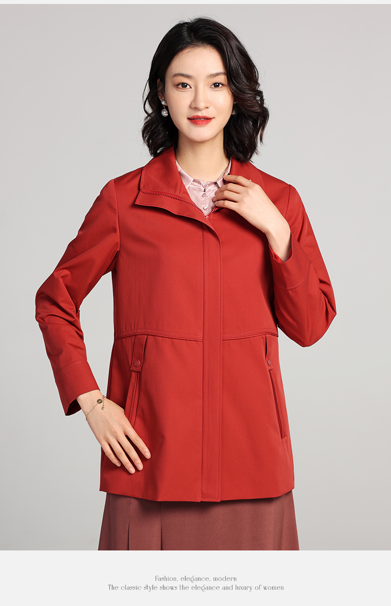 佐尔美2023春季新款 经典简约气质红色绿色短风衣女E23FD09