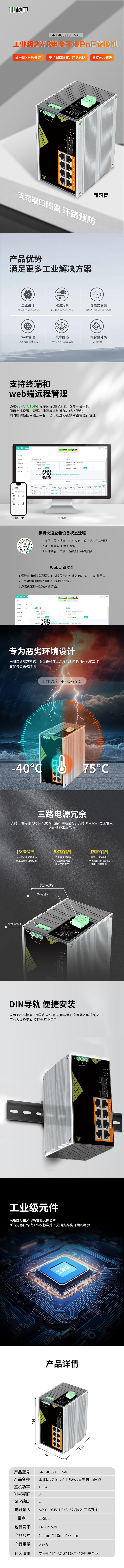 工业级2光8电二层云网管全千兆POE交换机130W AC+DC三冗余 2U GNT-IG3210FP-AC