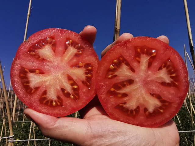 图一:菜番茄。酸甜口感,果肉粉粉糯糯。由于攀枝花气候开挂,昼夜温差很大,达到20度的温差,我们种植前又特意挑选的全日照山地,所以口感比市面上普通番茄甜,炒着吃不需要加糖就很甜了。