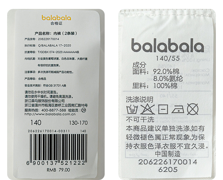 【商场同款】巴拉巴拉女童内裤平角儿童短裤不夹P四角抗菌两条装