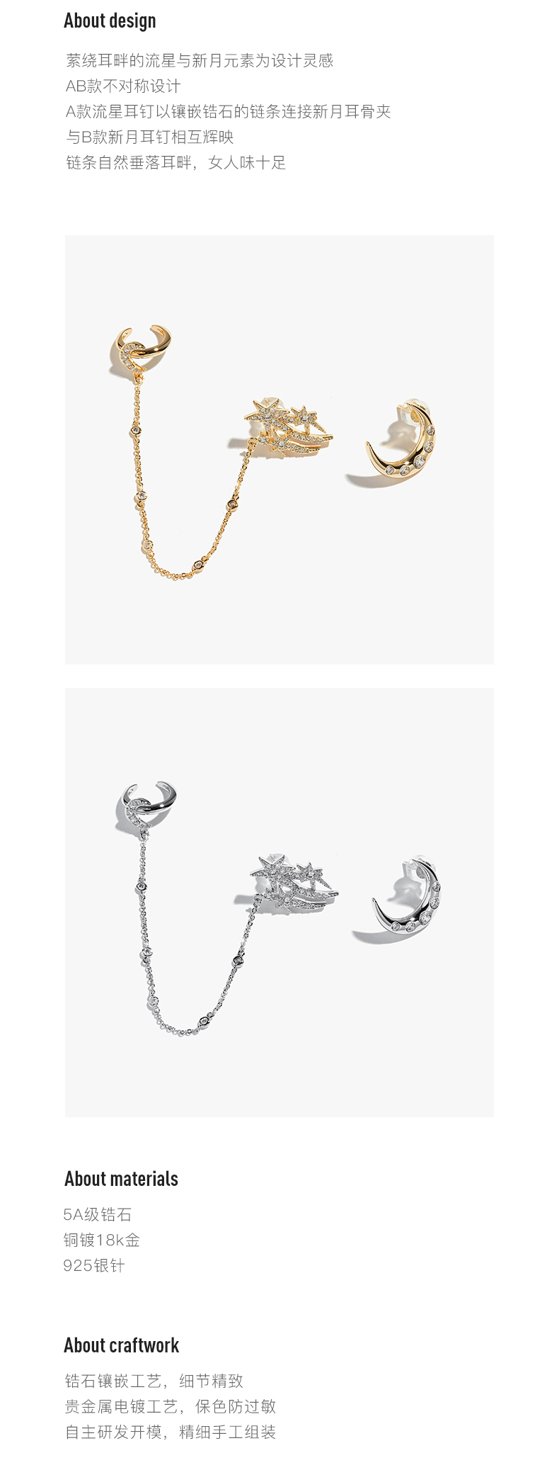 lost in echo x 摘星阁系列 设计师品牌 新款 流星链式不对称耳饰