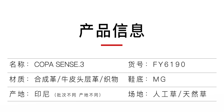 ADIDAS/阿迪达斯 COPA SENSE.3 MG短钉中端比赛训练足球鞋FY6190