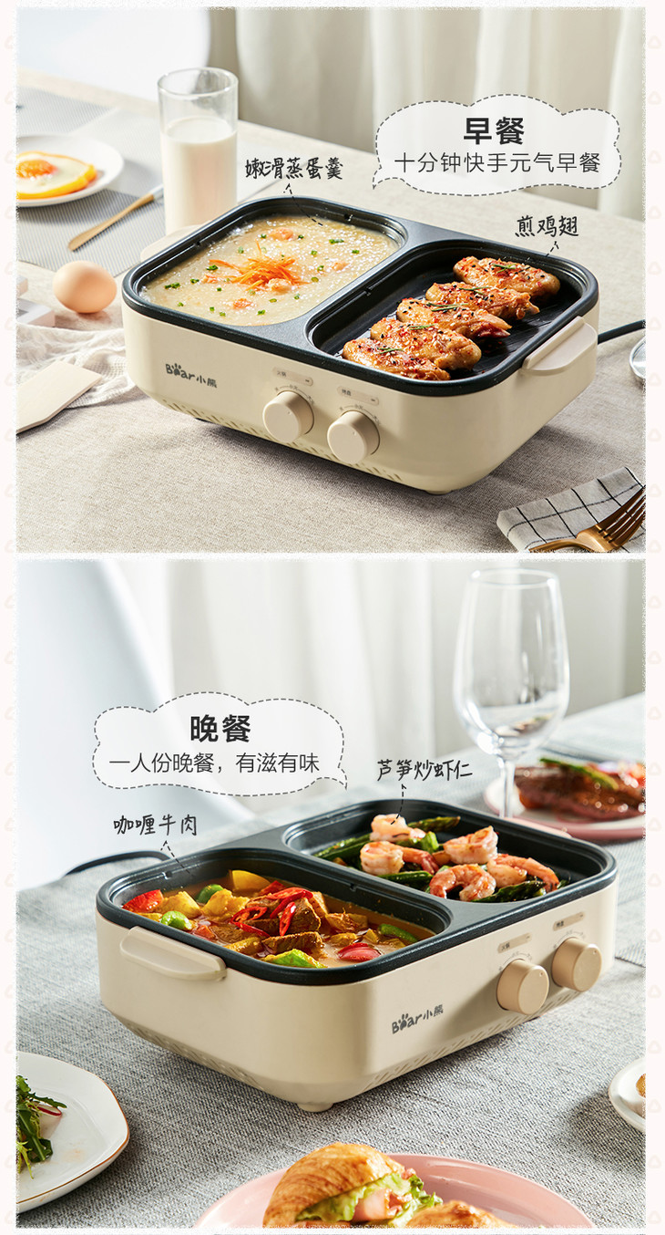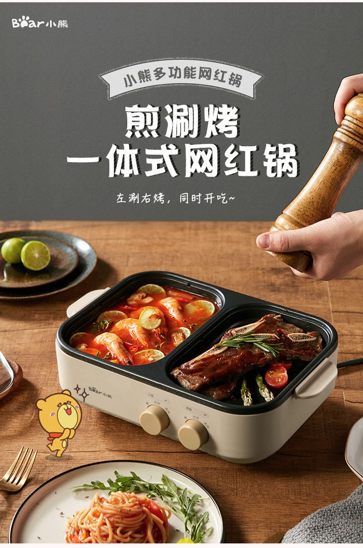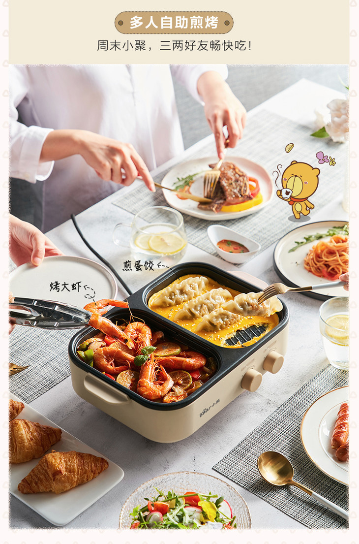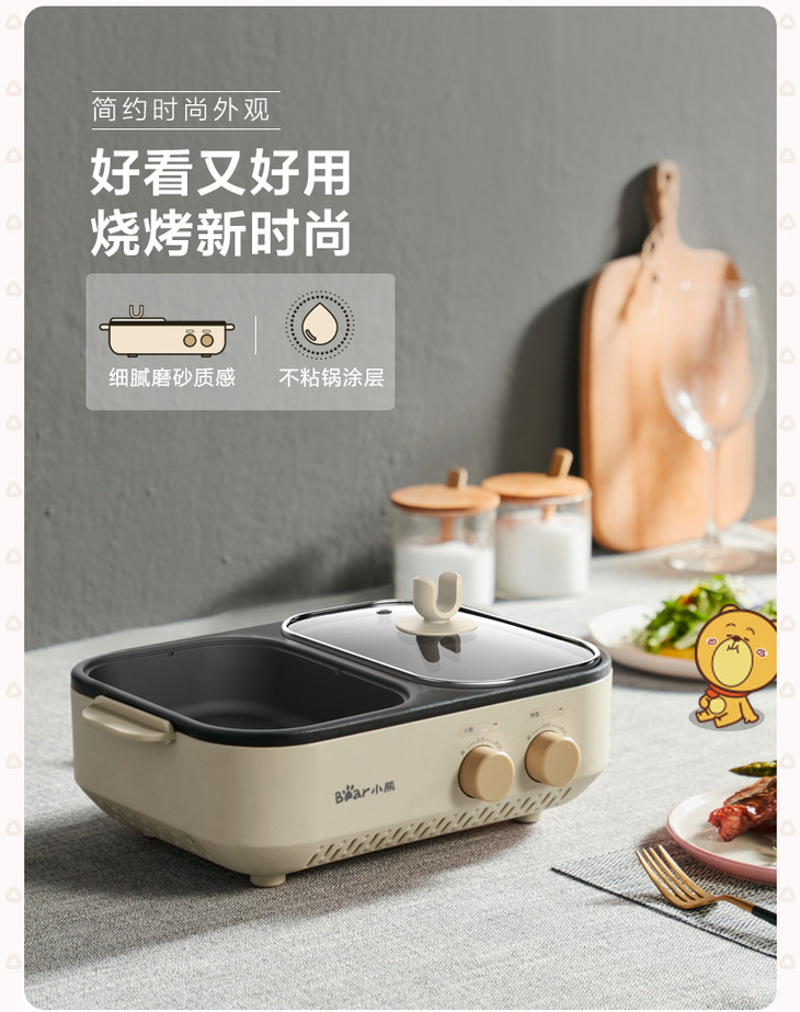 Bear/小熊 电火锅煮锅烧烤一体家用小型烤肉煎盘电烤炉DHG-C10G2