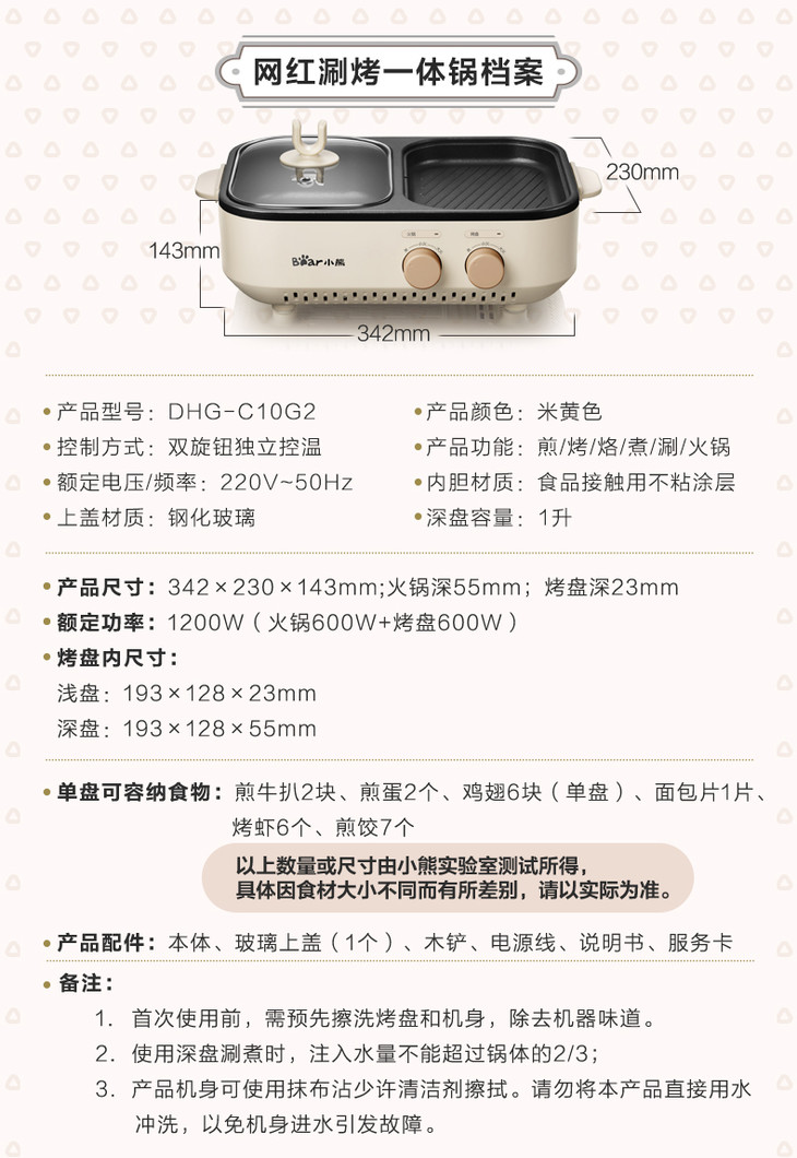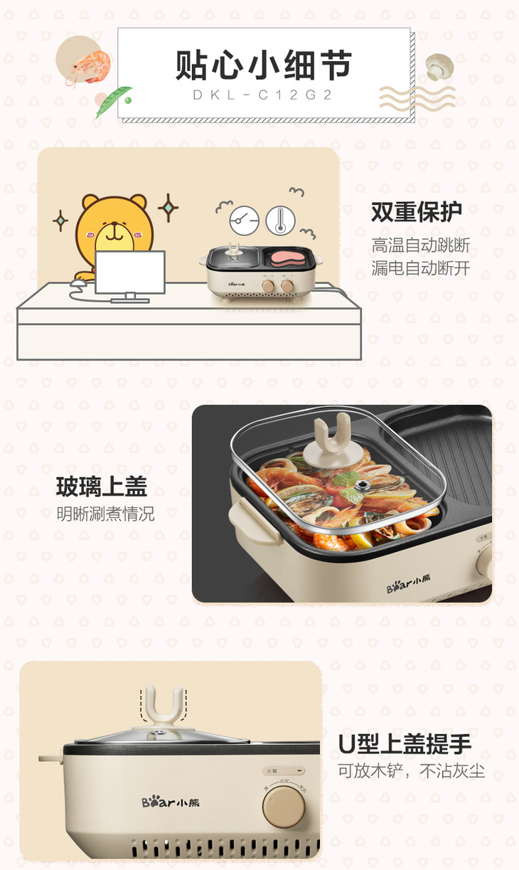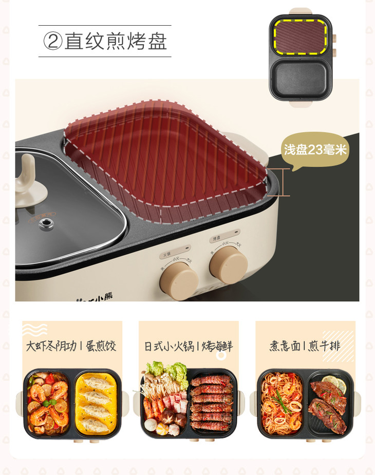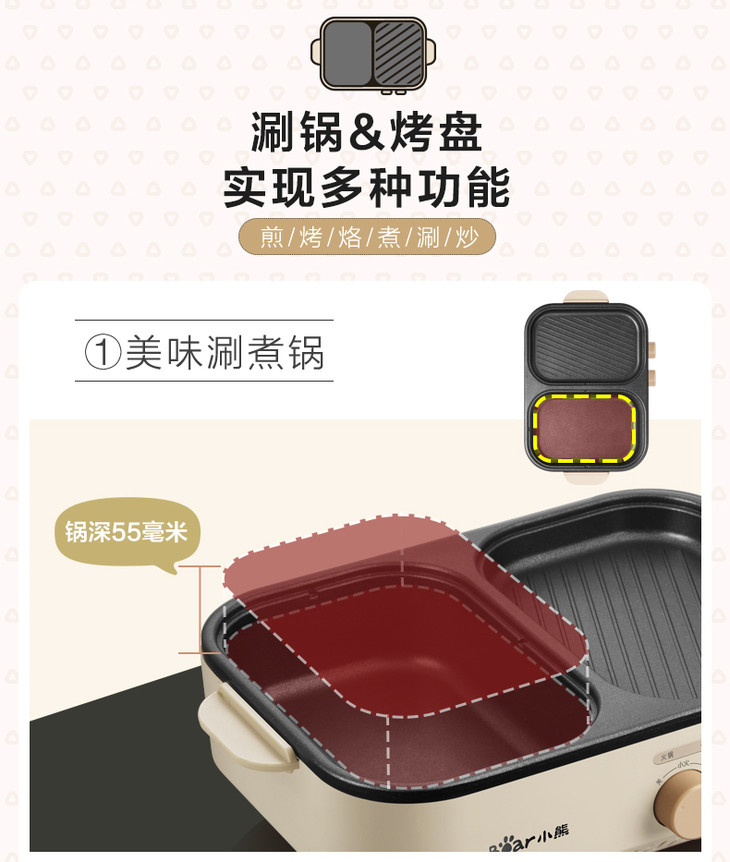 Bear/小熊 电火锅煮锅烧烤一体家用小型烤肉煎盘电烤炉DHG-C10G2