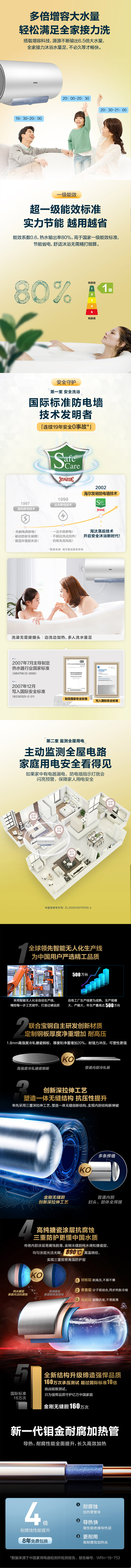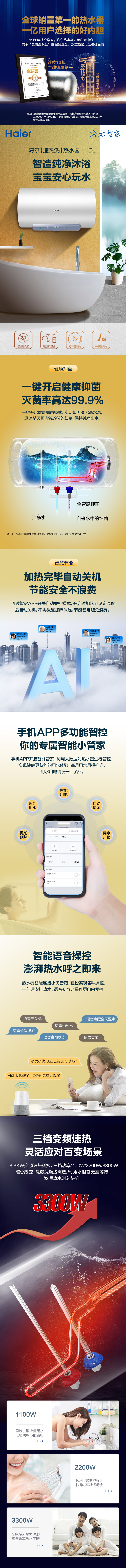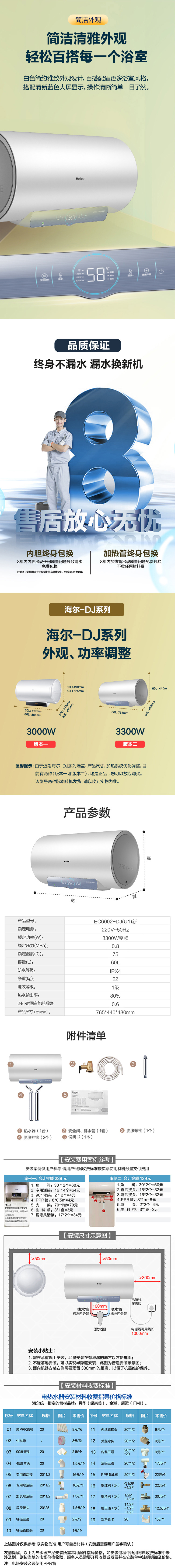 海尔 60升电热水器3.3KW变频速热 新智能互联 APP控制 健康抑菌 金刚无缝胆 DJ(U1)新
