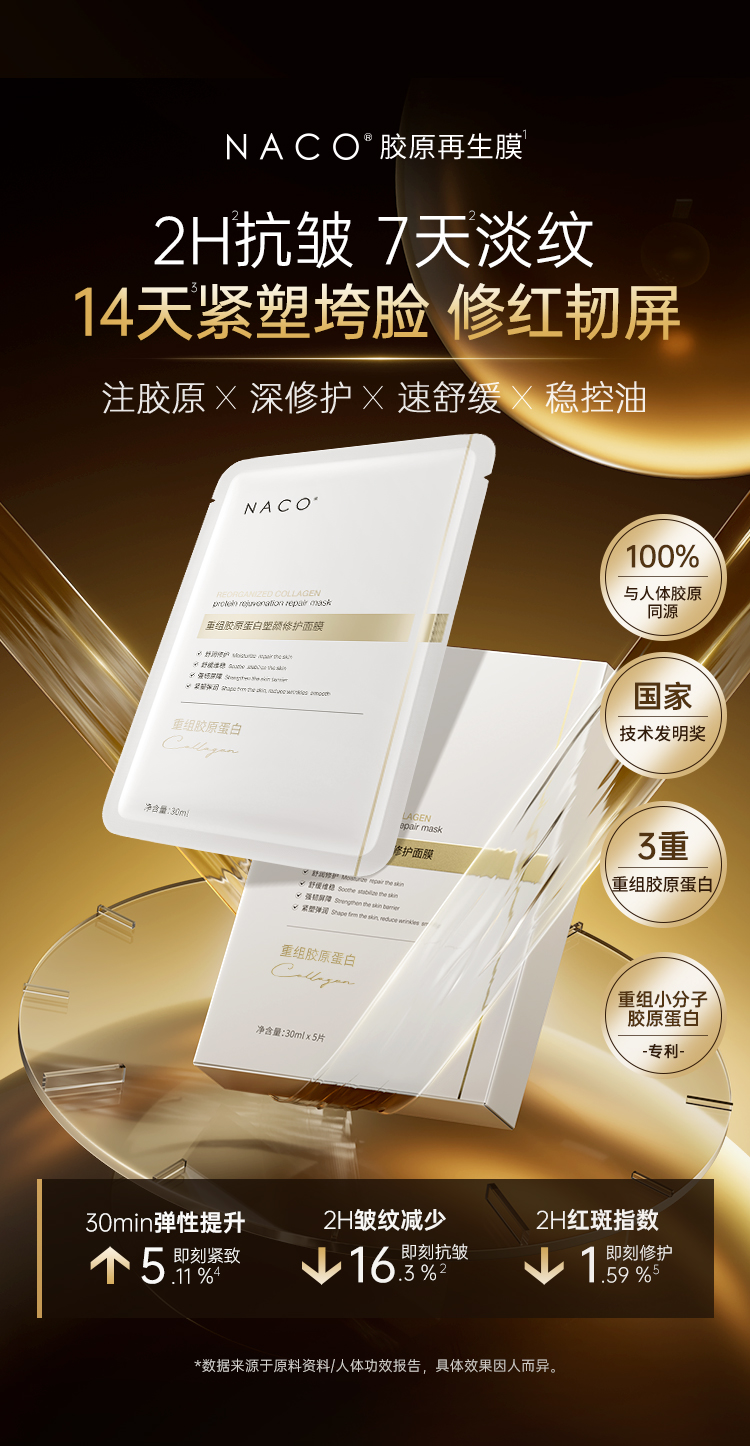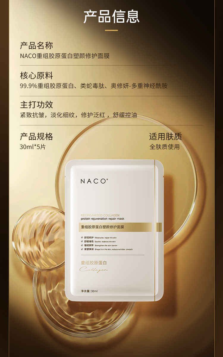 【老客专属福利】NACO重组胶原蛋白塑颜修护面膜(30ml*5/盒)赠同款面膜#紧致抗老,胶原再生