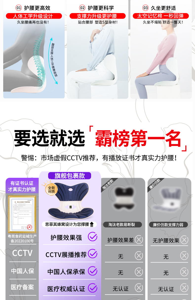 【坐垫腰靠 300斤可用 大码专属💙】分区设计,呵护护腰矫姿,美臀塑形,舒缓腰部压力预防驼背和脊椎变形😉保护腰椎,办公室久坐/办公室坐垫😘【发货地】东莞【发货时效】48小时【快递公司】邮政