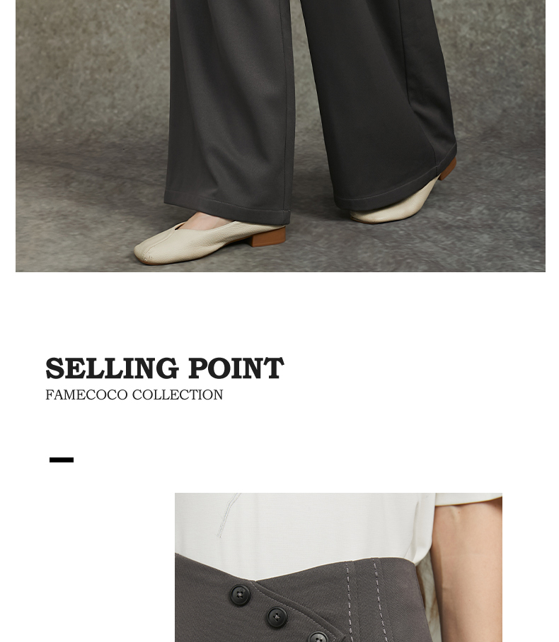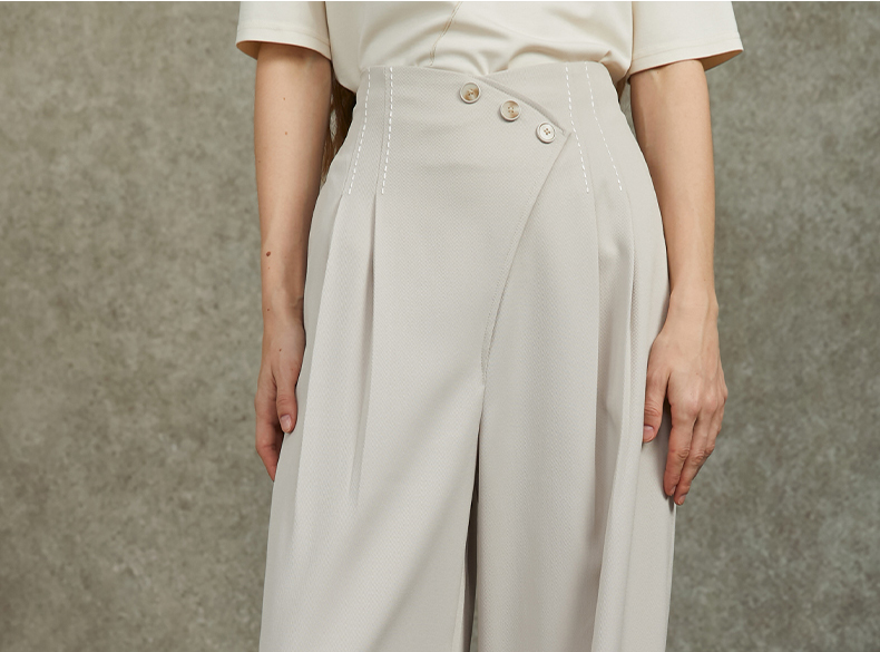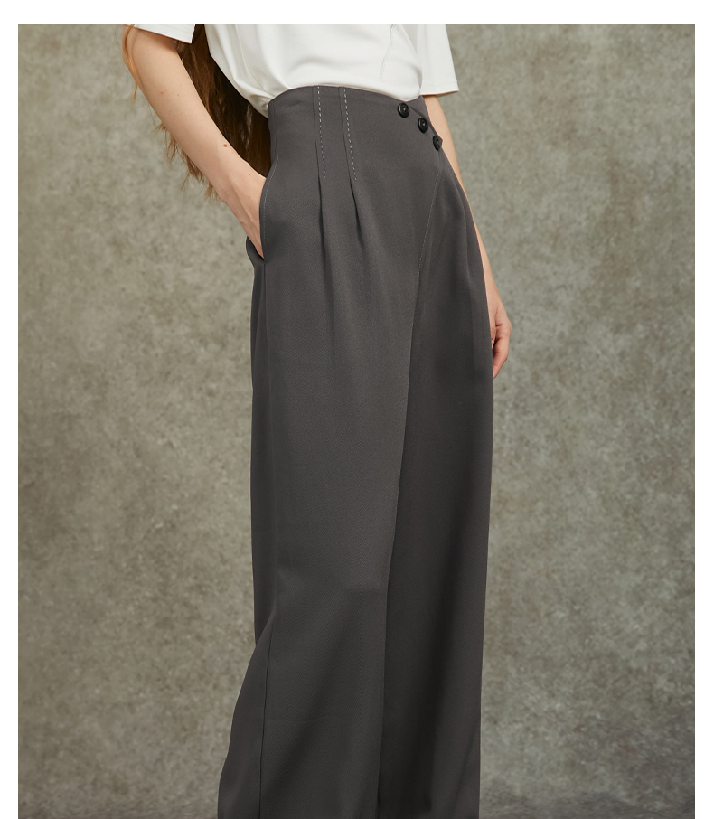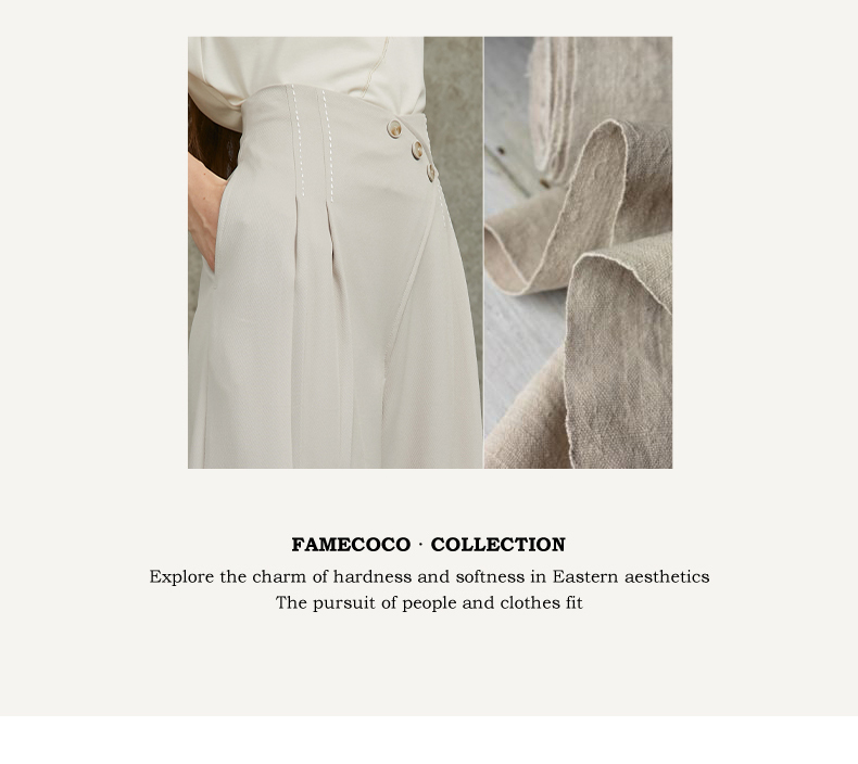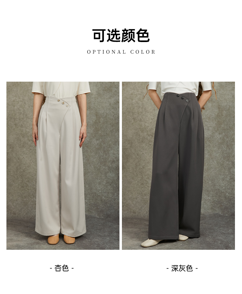 Famecoco范可儿设计感斜襟极简西装裤长裤高腰阔腿裤FAC6GA012