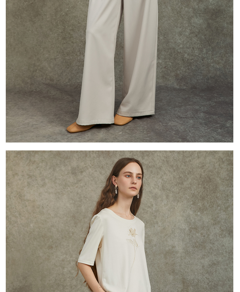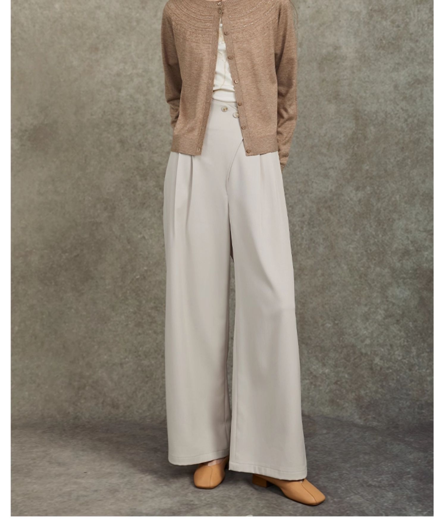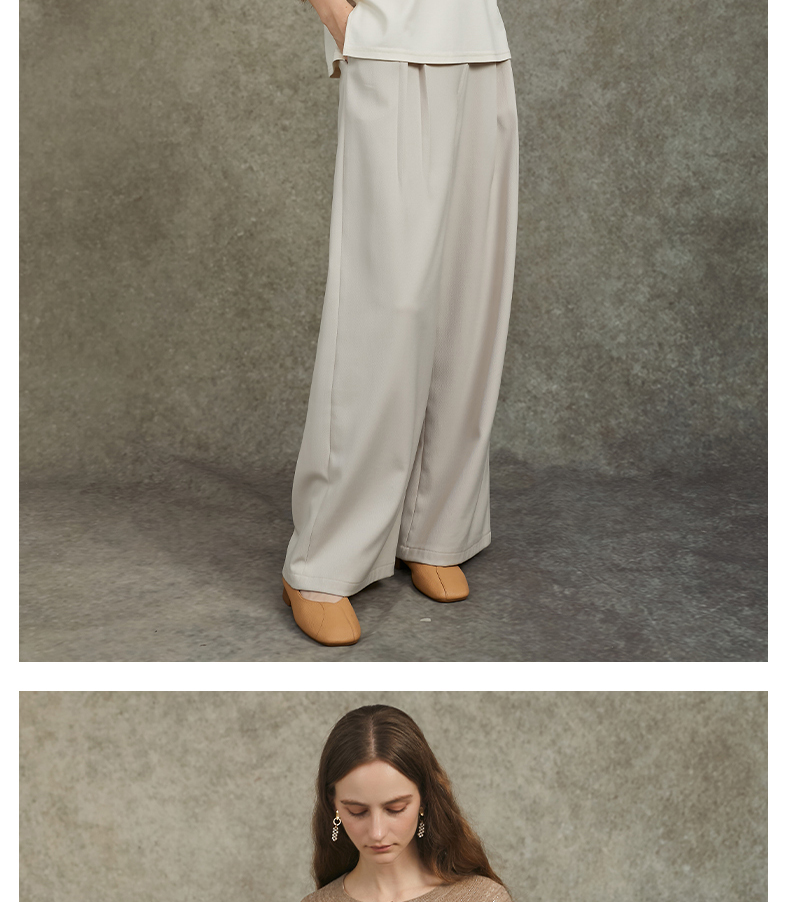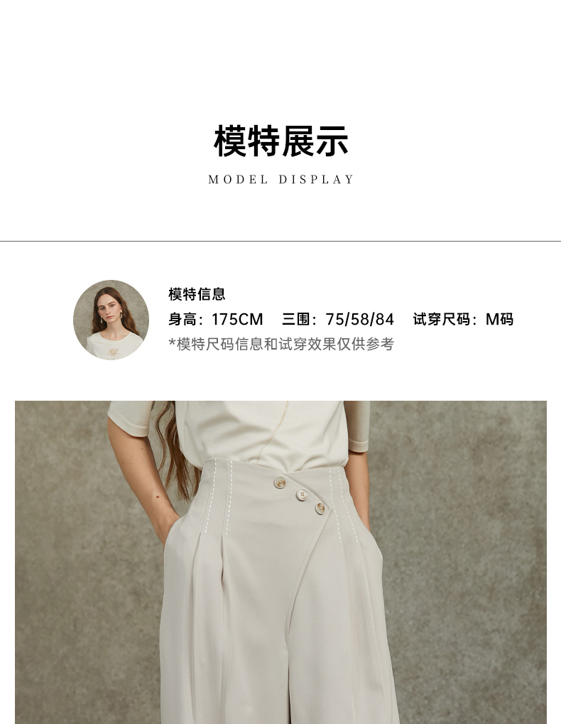 Famecoco范可儿设计感斜襟极简西装裤长裤高腰阔腿裤FAC6GA012