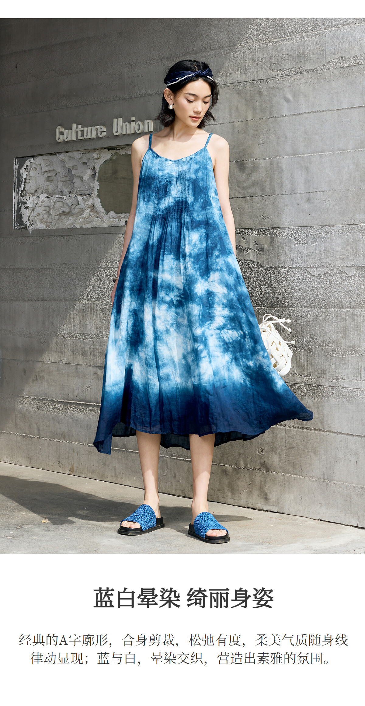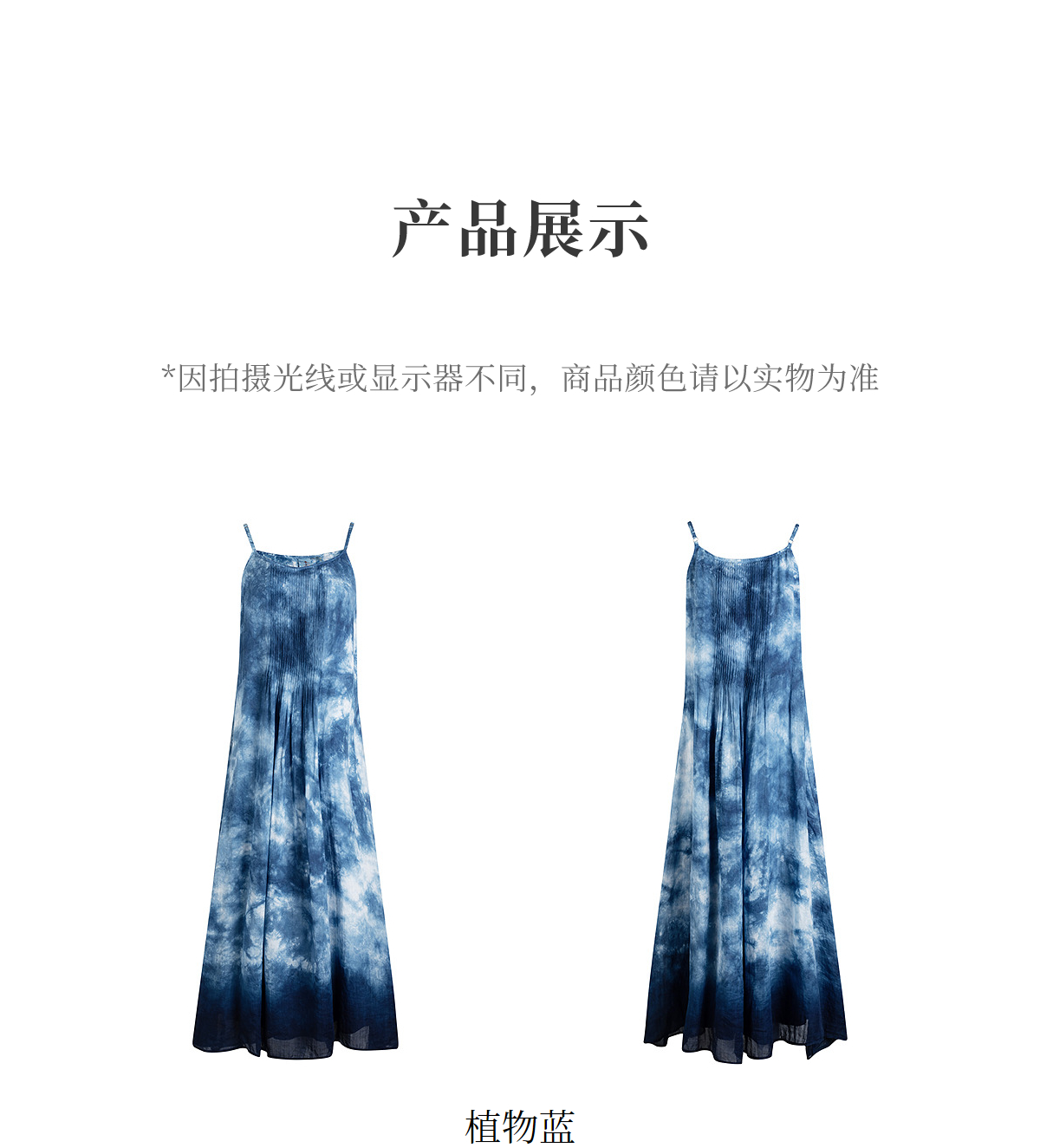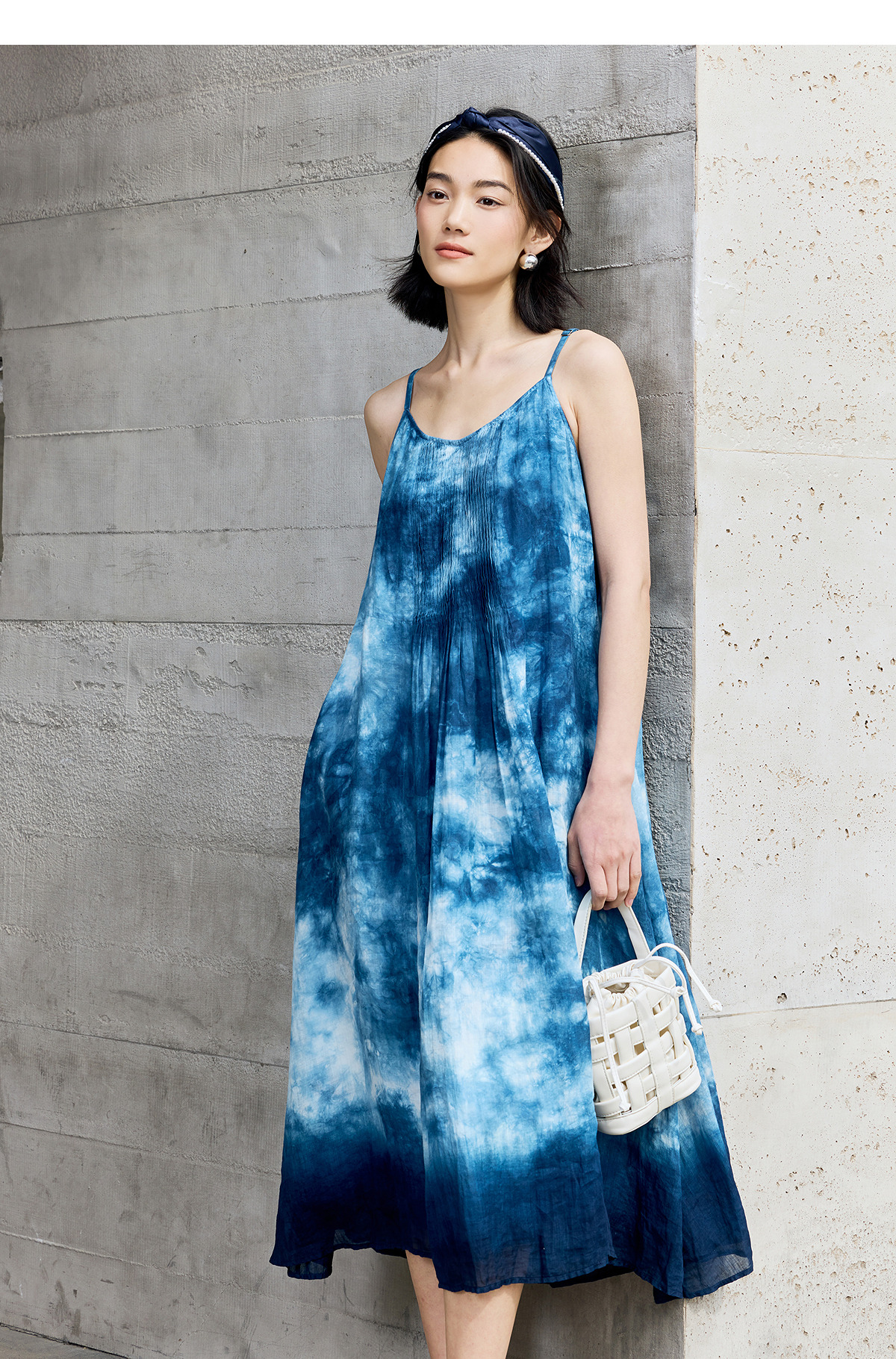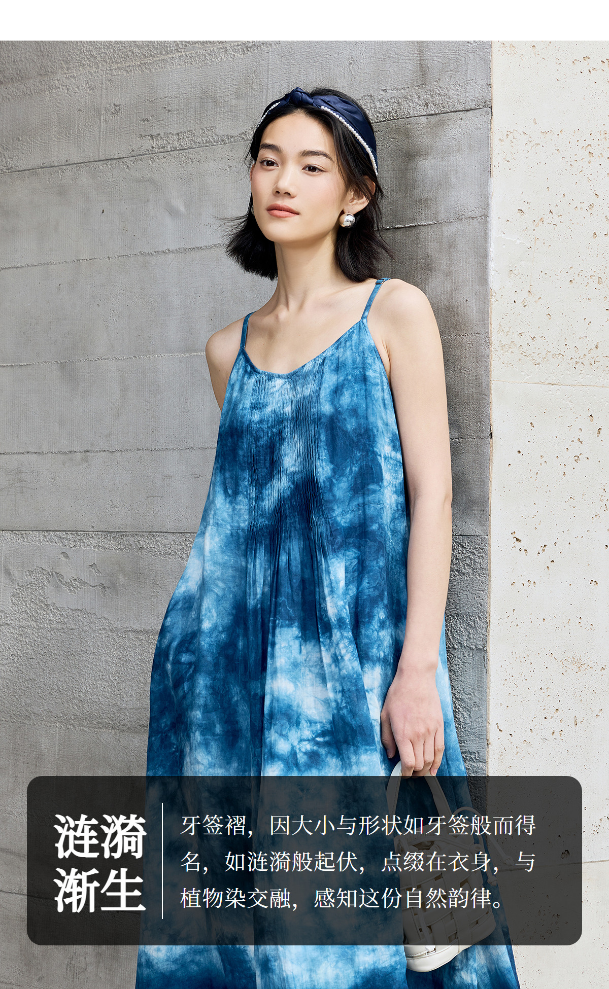 【林栖设计小店】苎麻连衣裙植物染压褶复古优雅百搭2025春季新品吊带裙女1951152