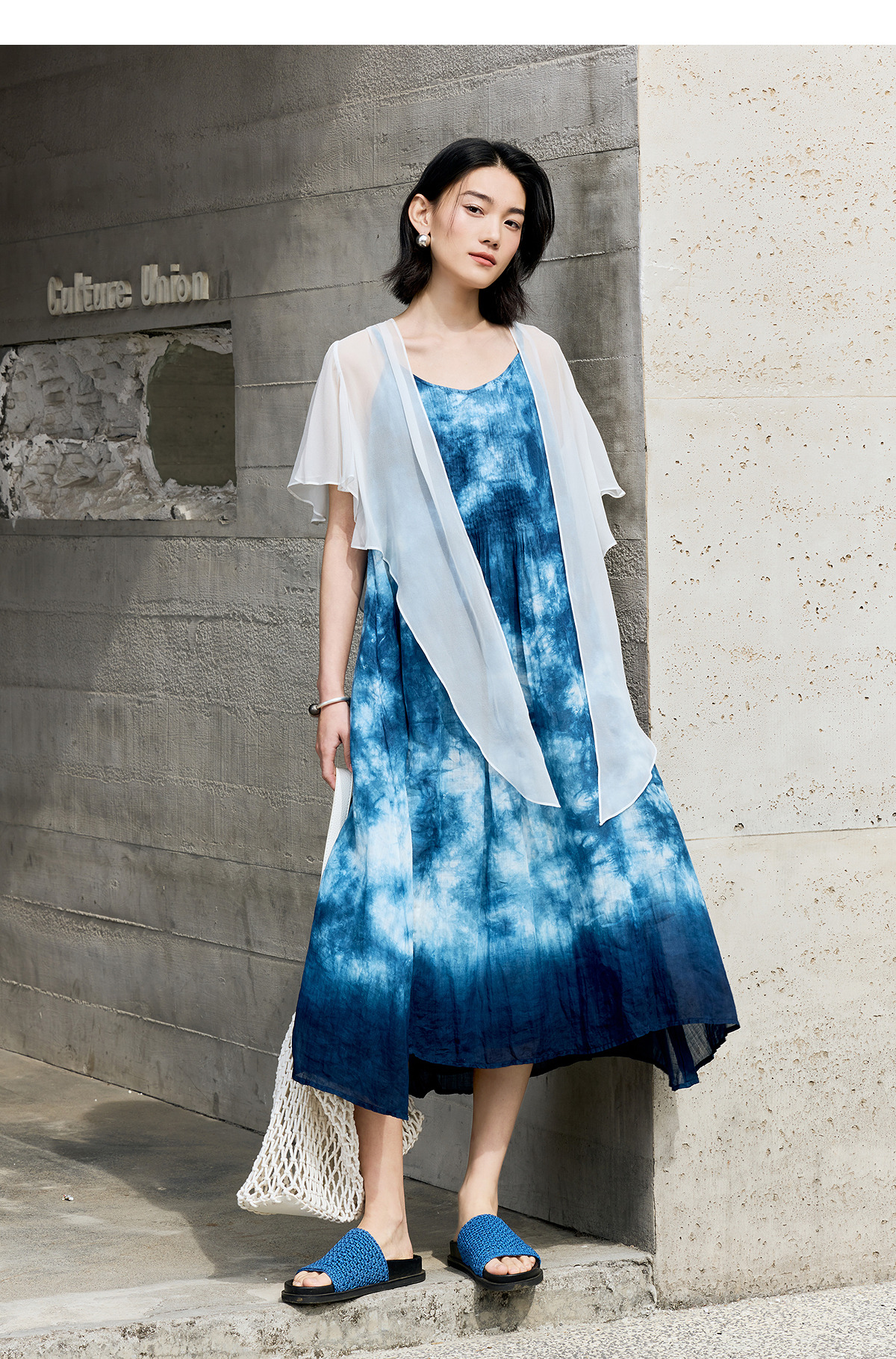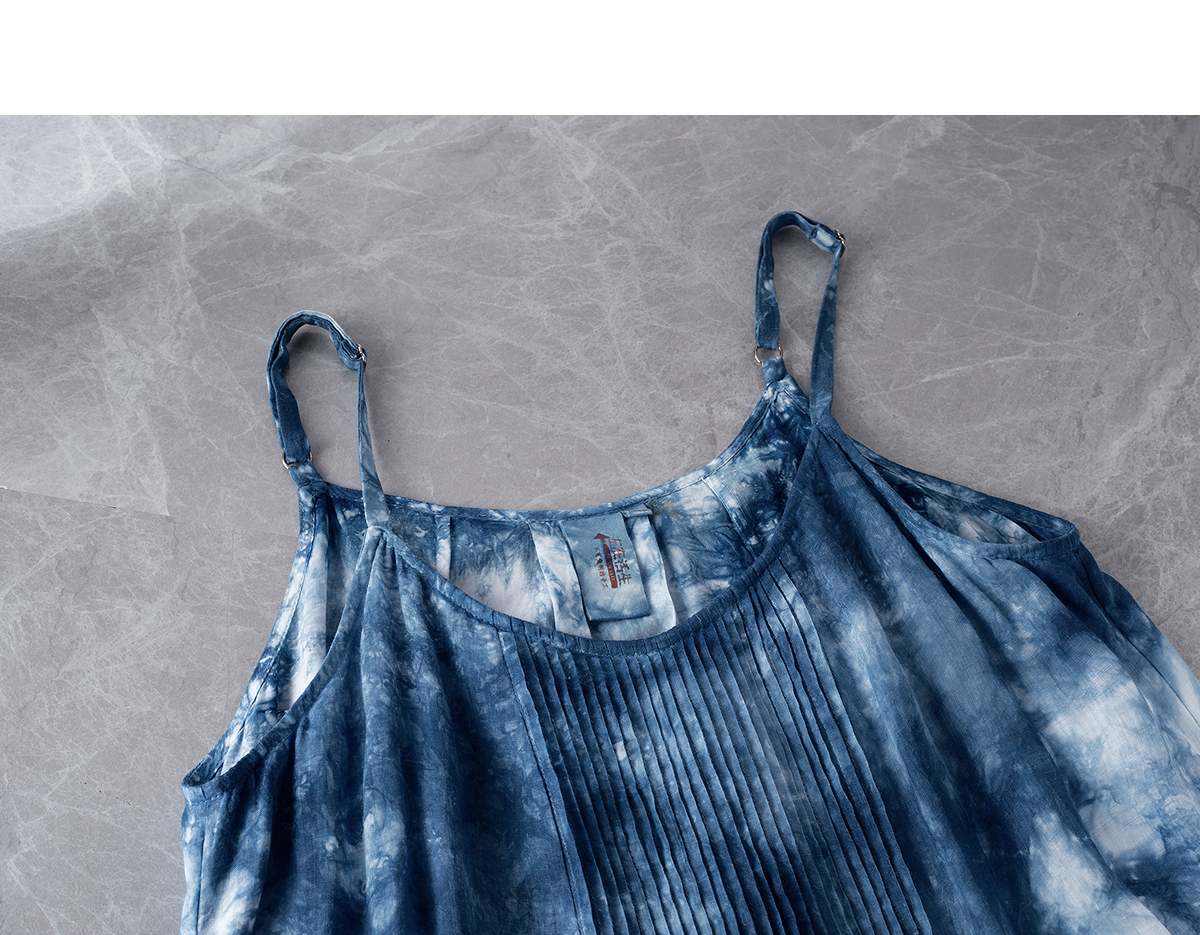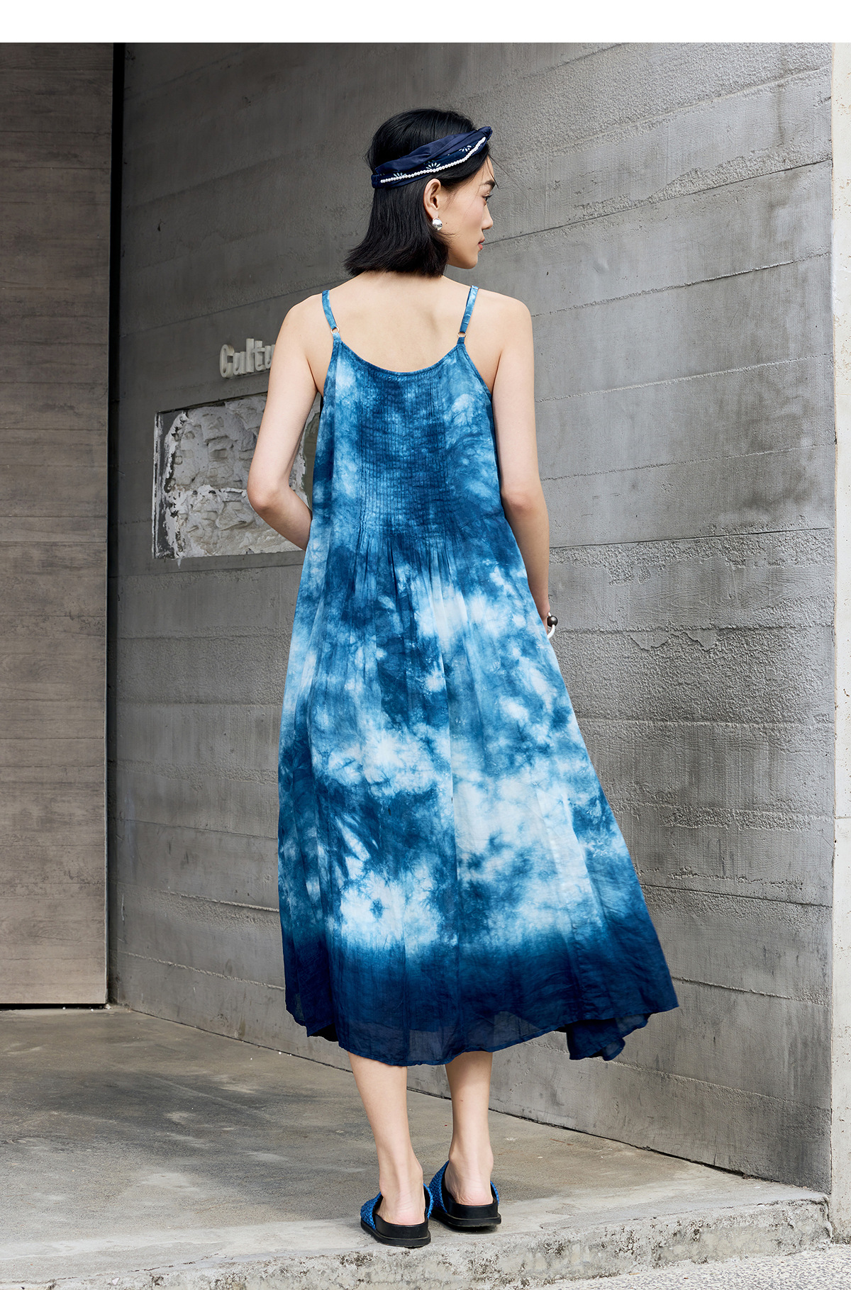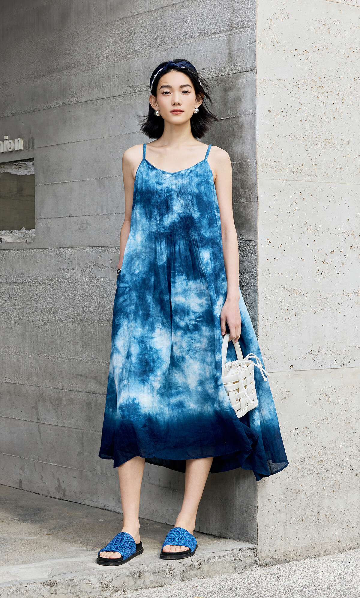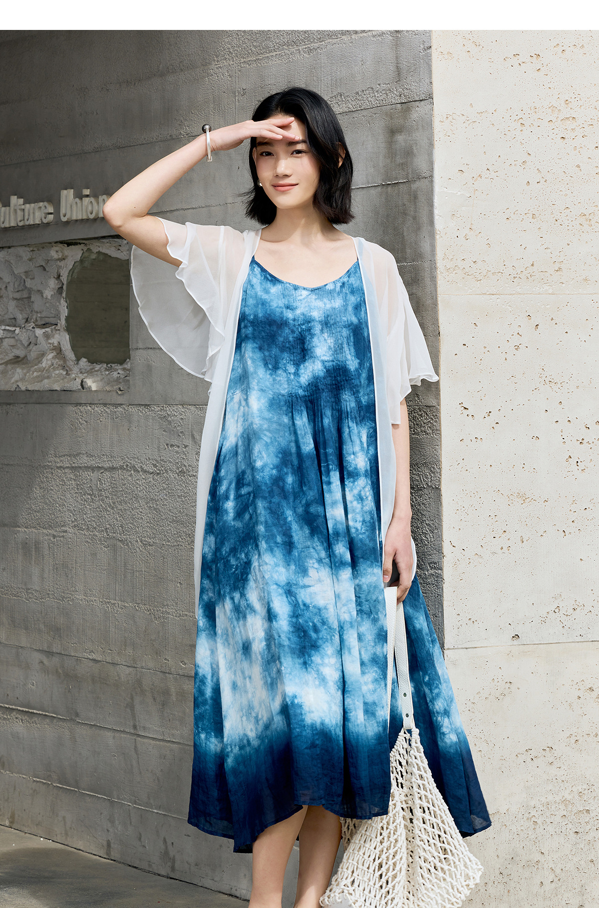 【林栖设计小店】苎麻连衣裙植物染压褶复古优雅百搭2025春季新品吊带裙女1951152