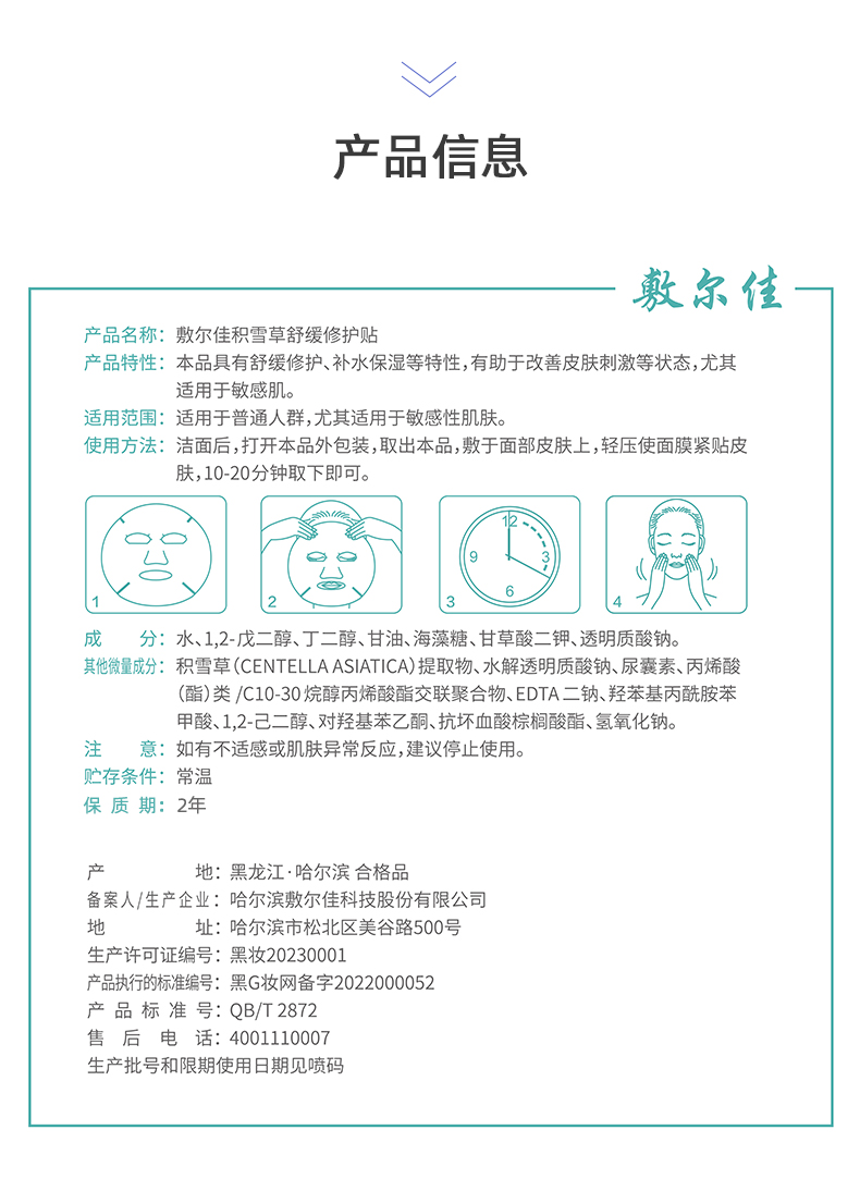 敷尔佳积雪草舒缓修护贴 5贴/盒