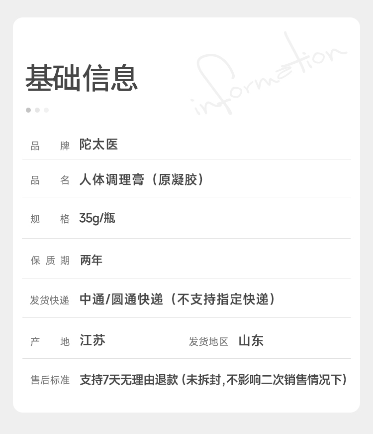 【陀太医人体调理膏(原凝胶)】纯植物配方 0激素 传统炮制工艺【AA】