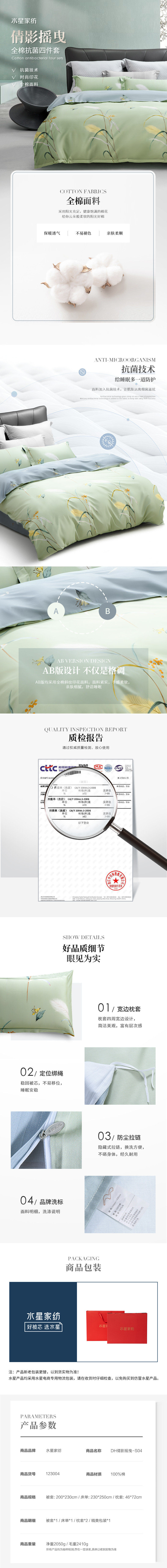水星家纺 全棉抗菌四件套 倩影摇曳 被套:200*230cm 床单:230*250cm 枕套:48*74cm*2