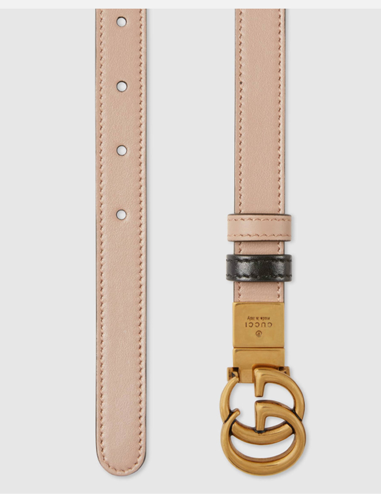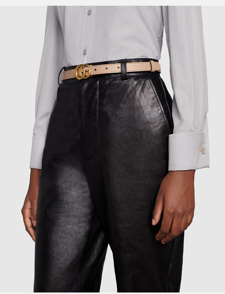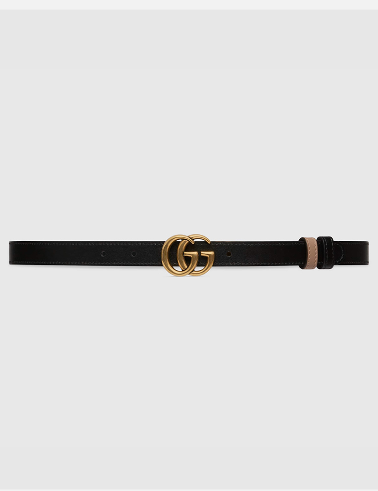 【二】GUCCI 古驰 女士双G带扣双面窄版腰带 黑色 659418 0YATC 5793