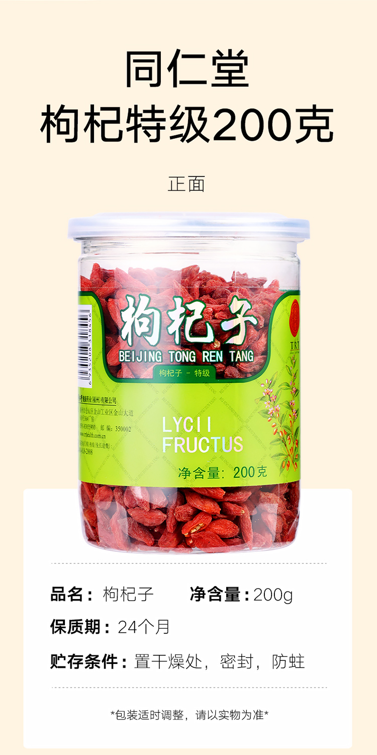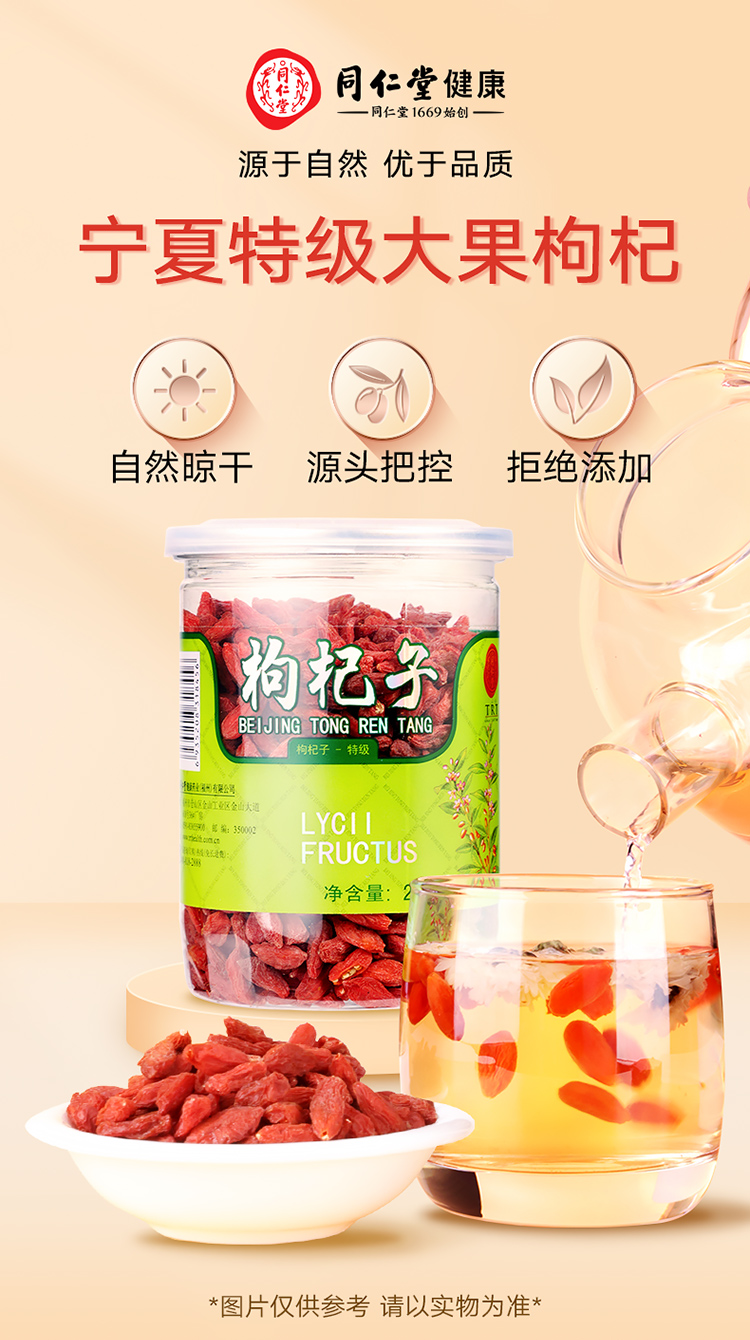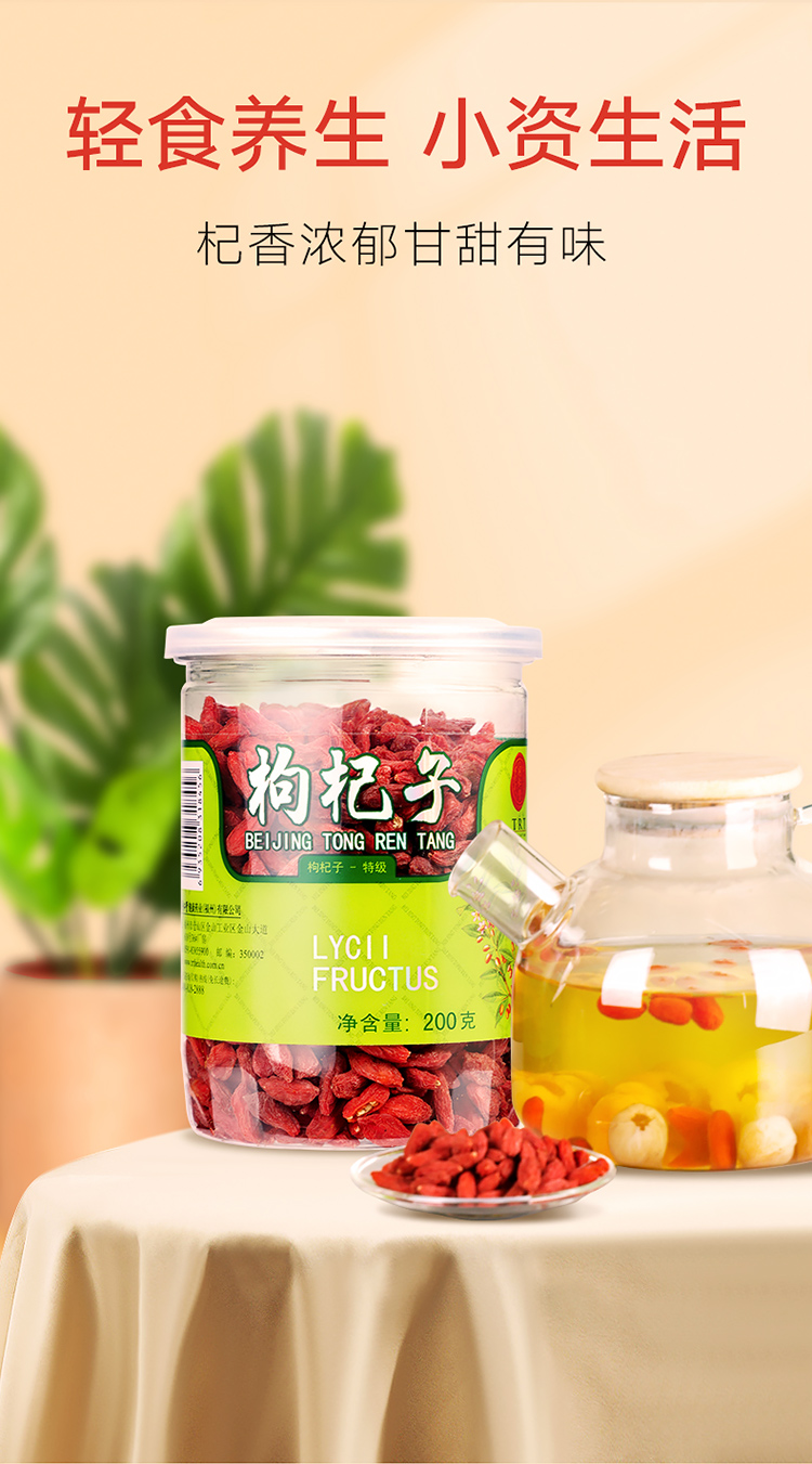 北京同仁堂 红枸杞 宁夏中宁特级枸杞子200g 免洗枸杞子