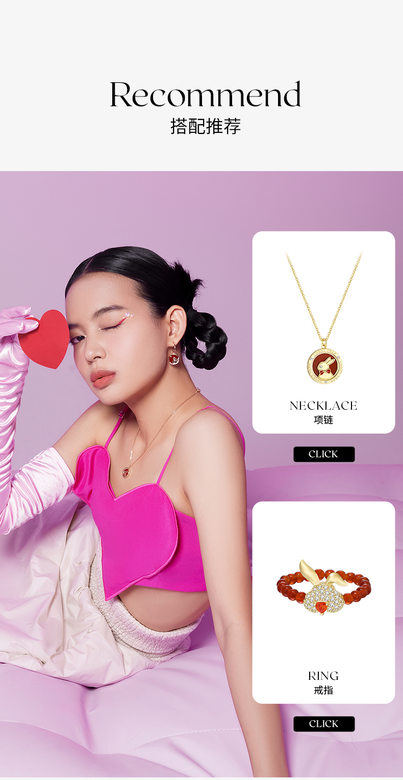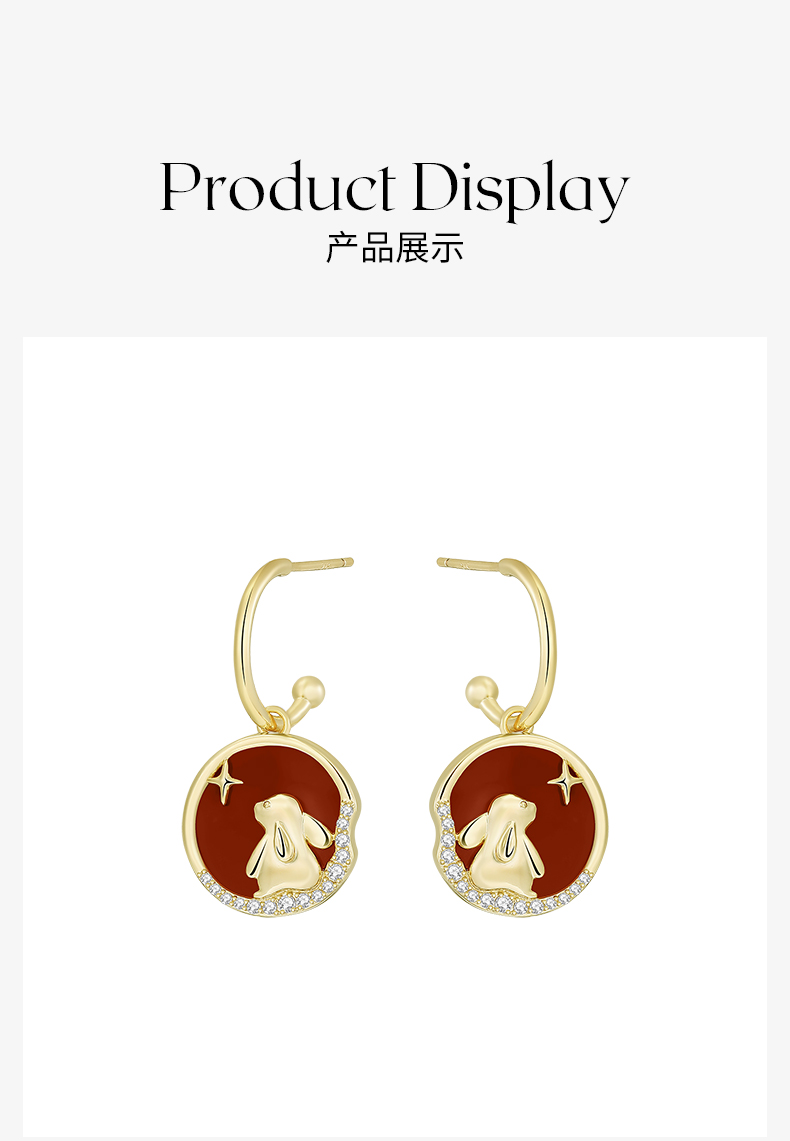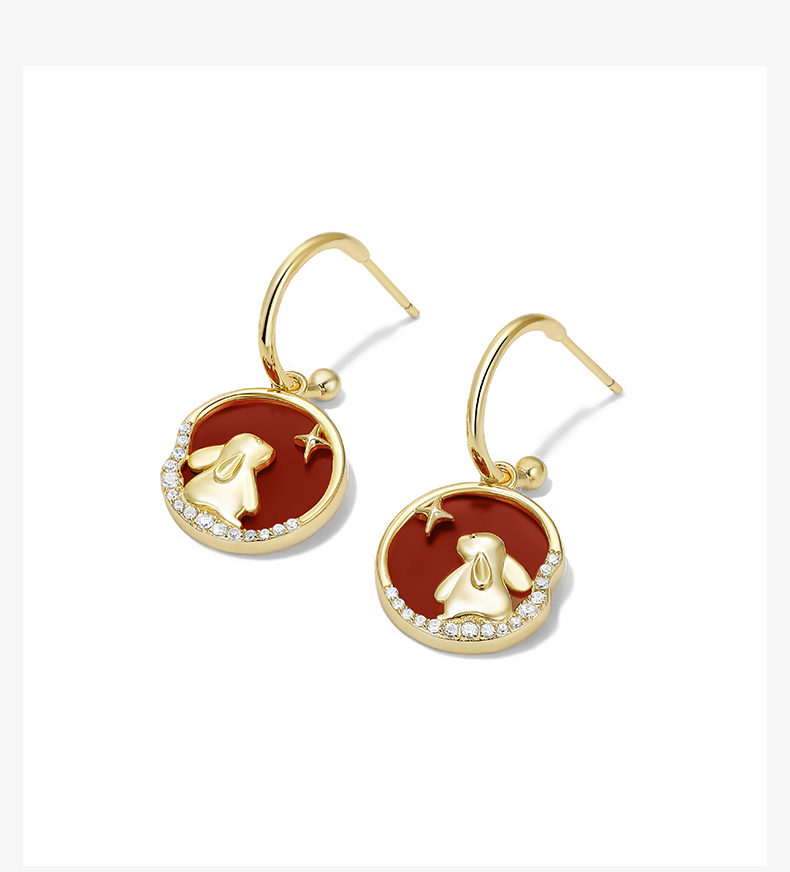 ZEGL本命年系列心愿兔子耳环女小众设计感高级红玛瑙耳钉银针耳饰