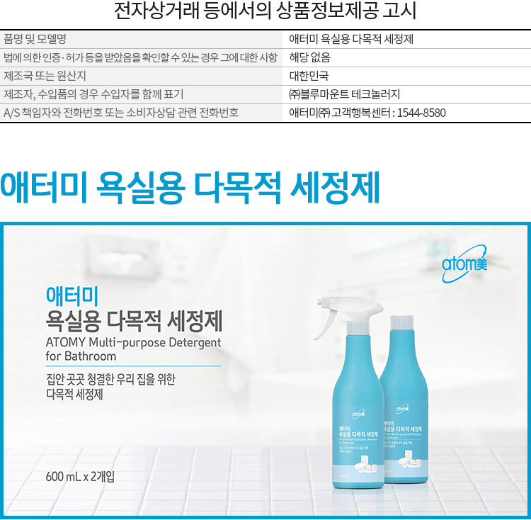 Atomy浴室多功能清洁剂 2瓶JPY带授权招加盟代理
