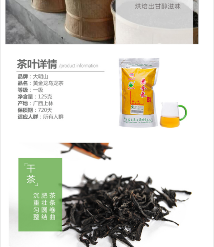 上林县大明山黄金龙乌龙茶125g/袋