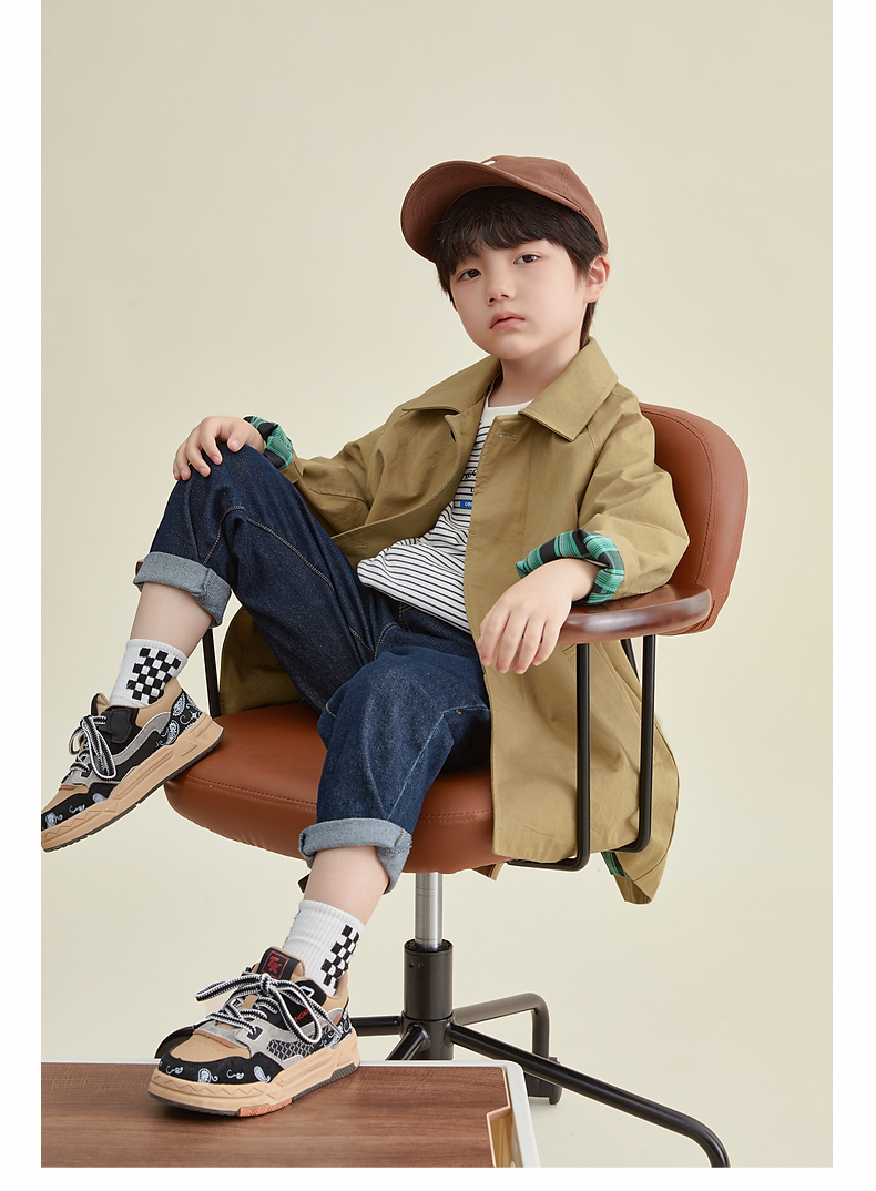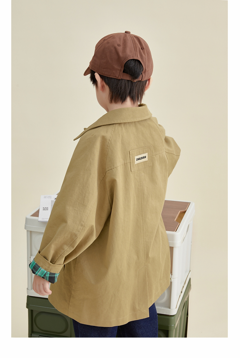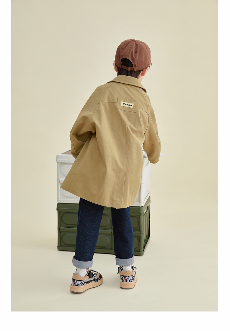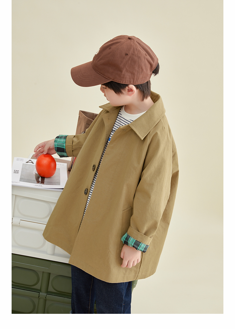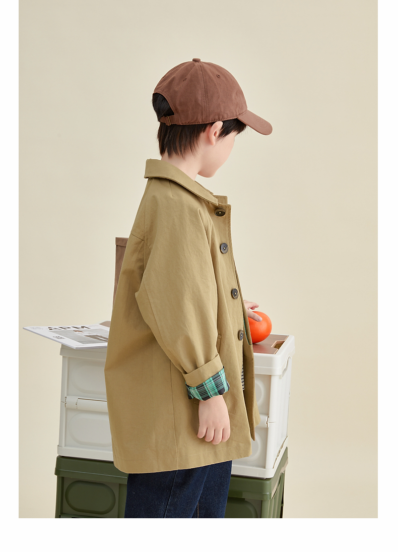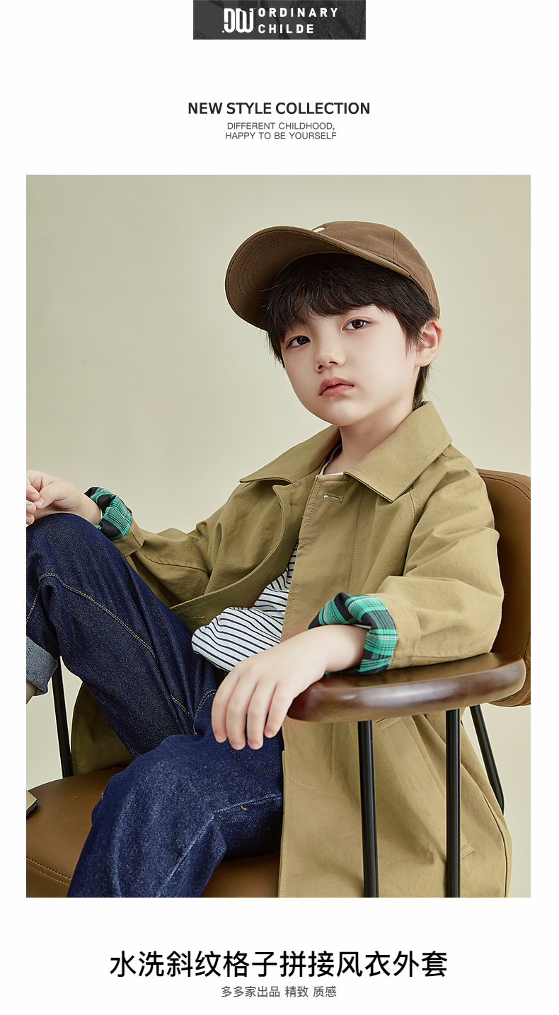 【件件底价,童装双倍积分】多多家男童风衣春款纯棉春季儿童外套新款翻领卡其色韩版上衣5930