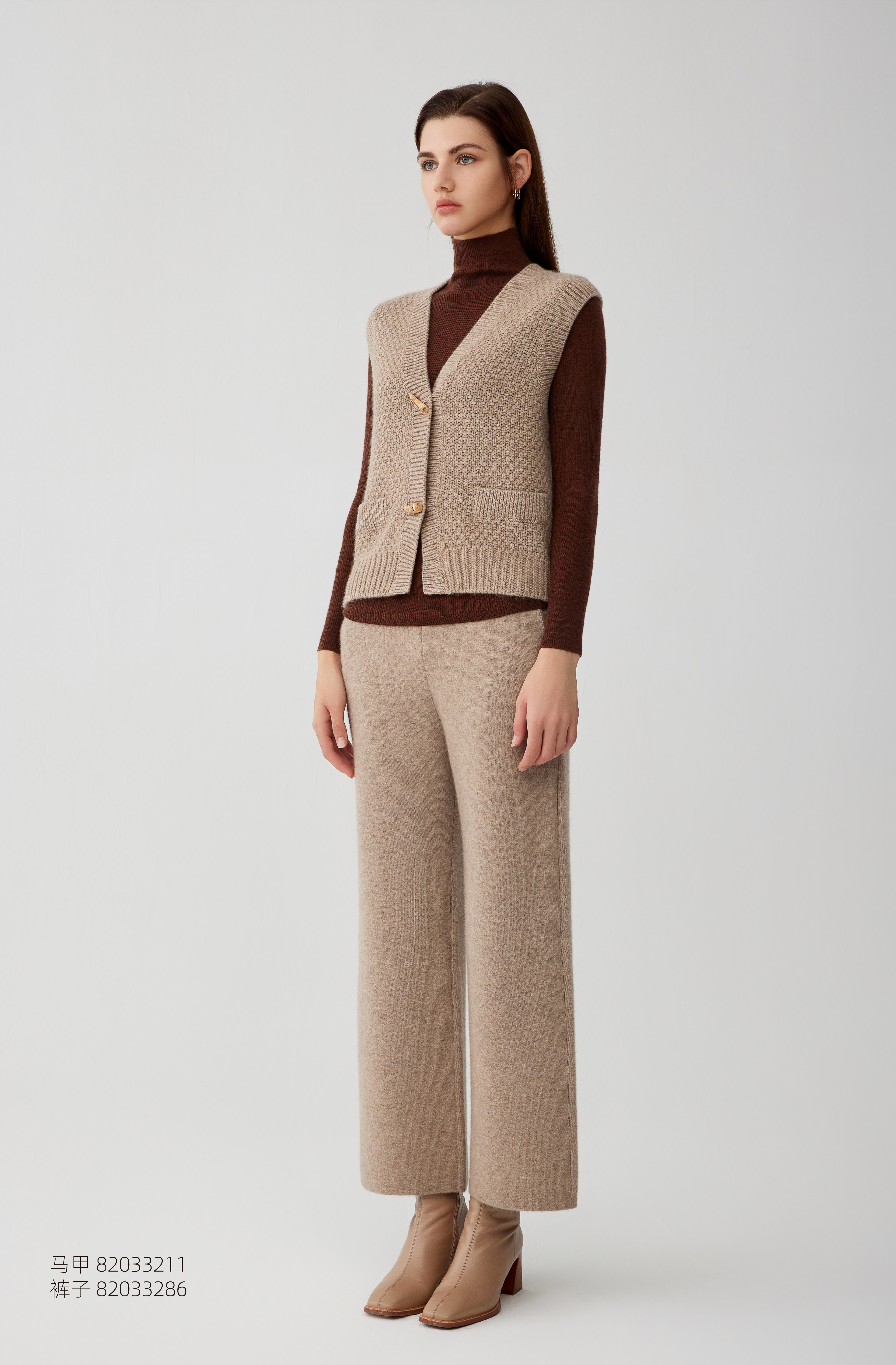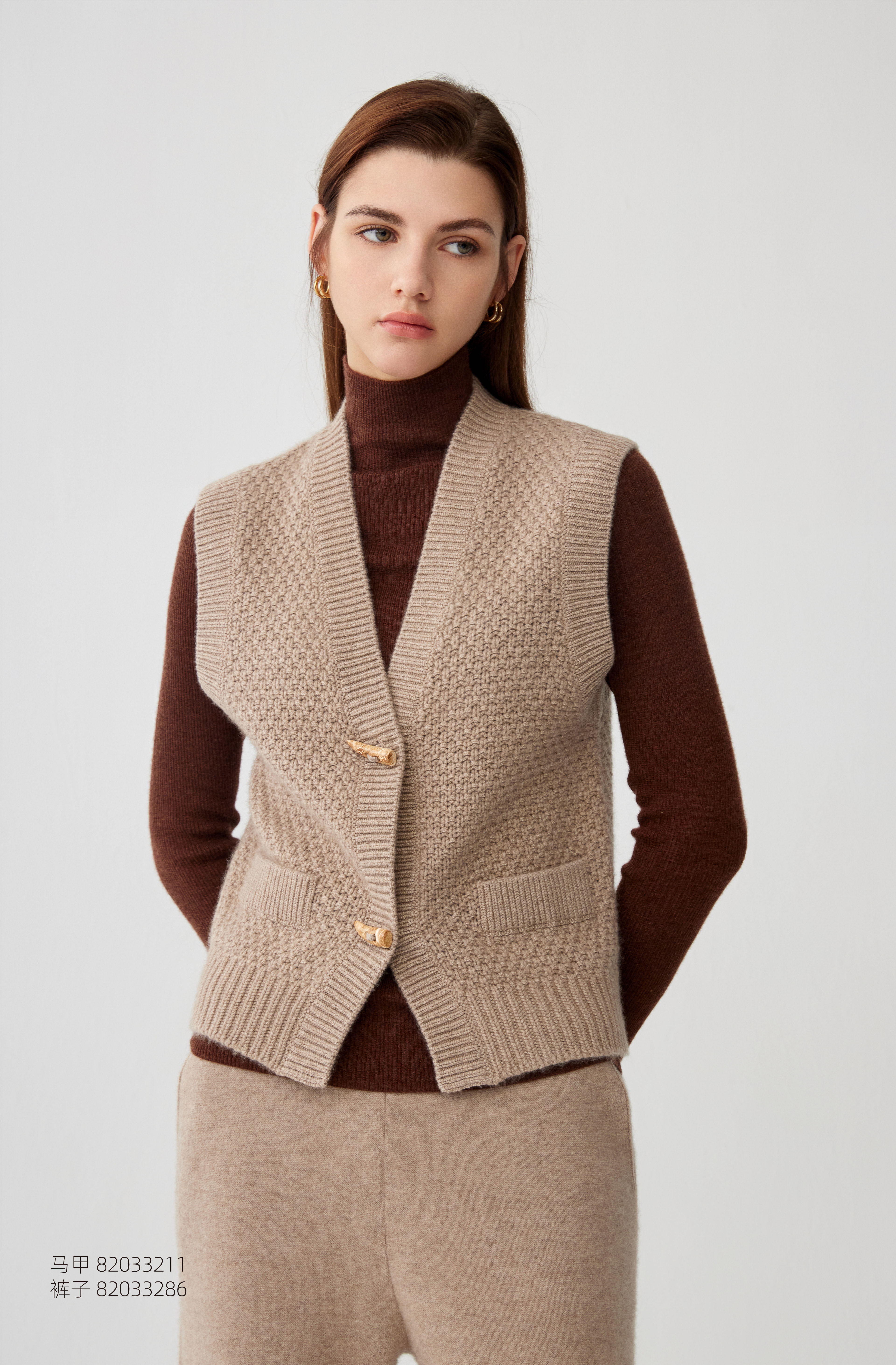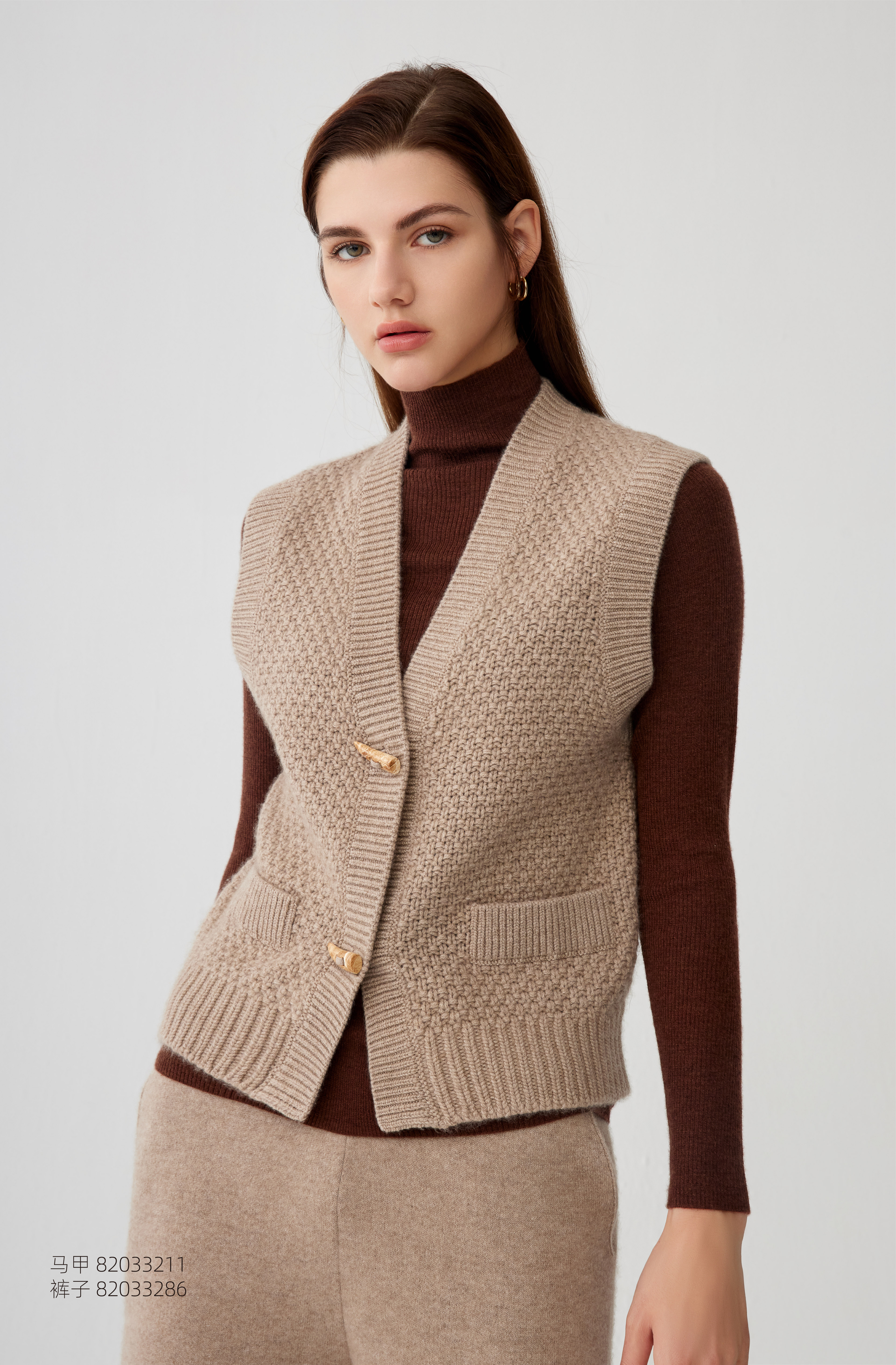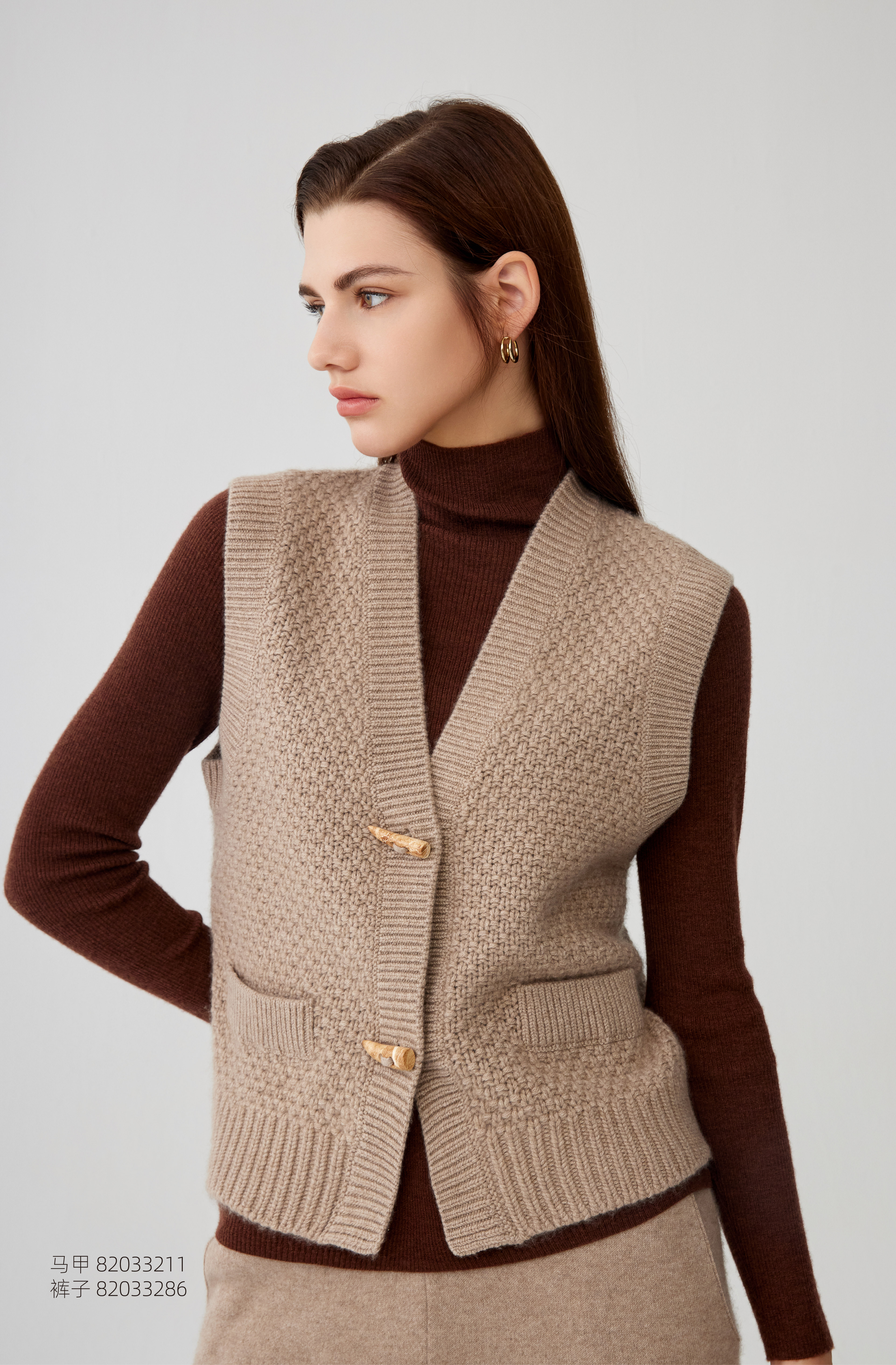【纯羊绒无袖开衫】羊绒世家秋冬新品女士100%山羊绒V领单排扣小外套