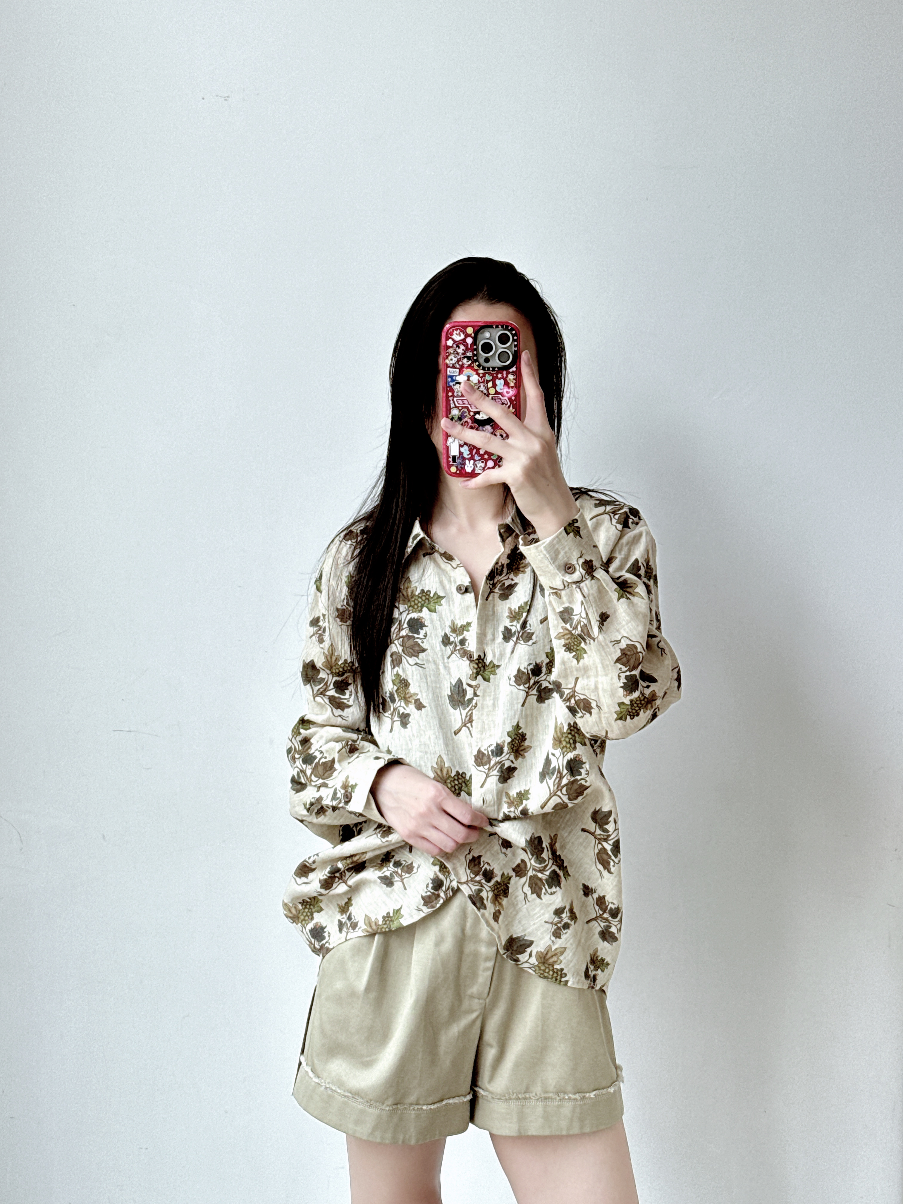 复古文艺印花亚麻衬衫