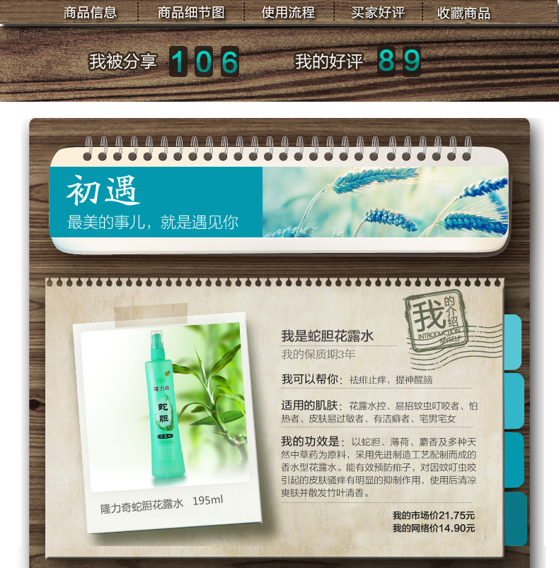 隆力奇蛇胆花露水195ml