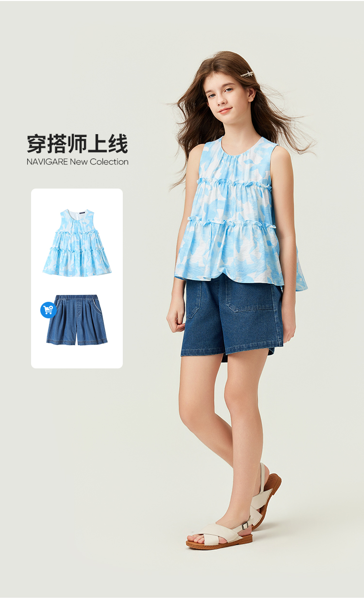 【纳维凯尔】【120-165】Navigare意大利小帆船女童夏季无袖上衣