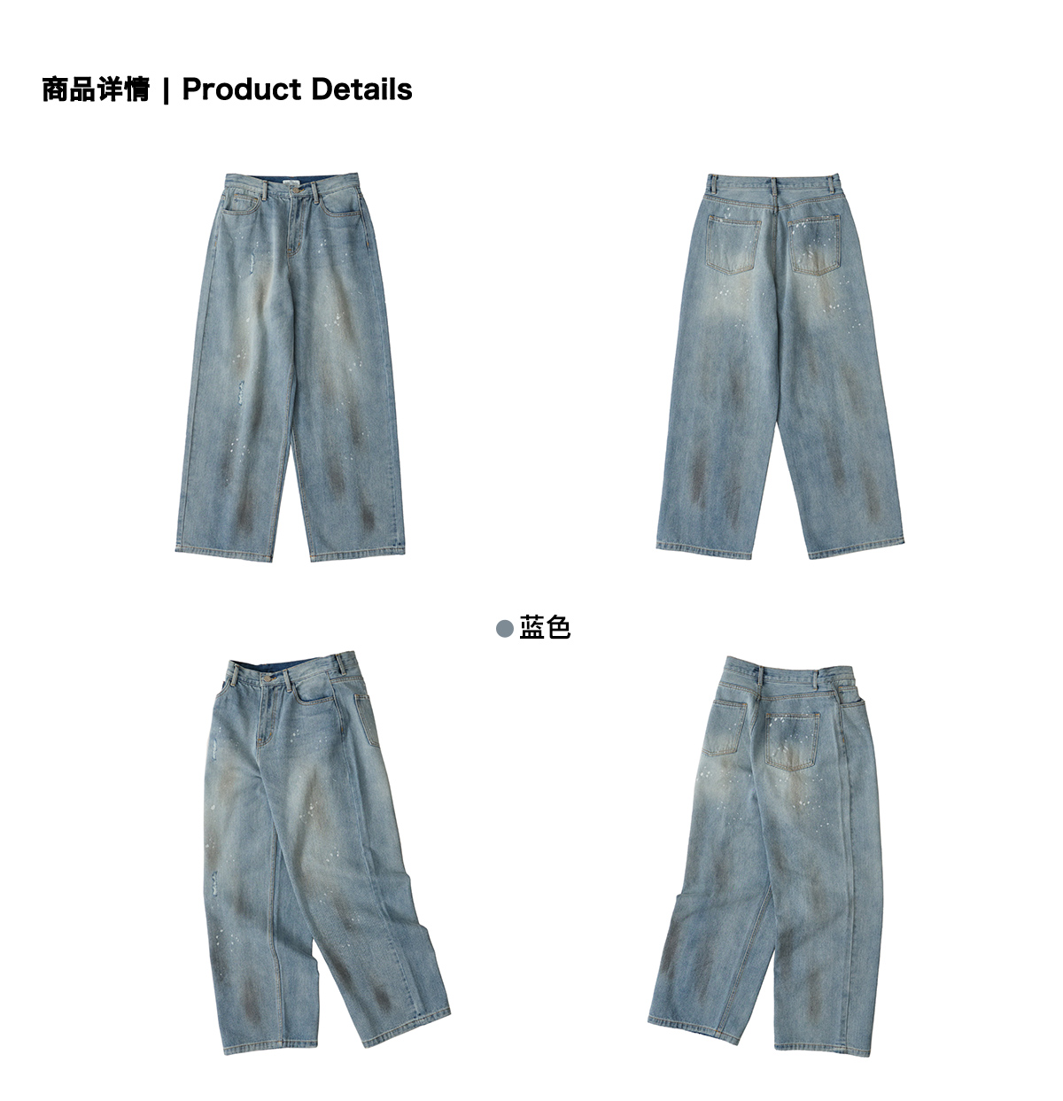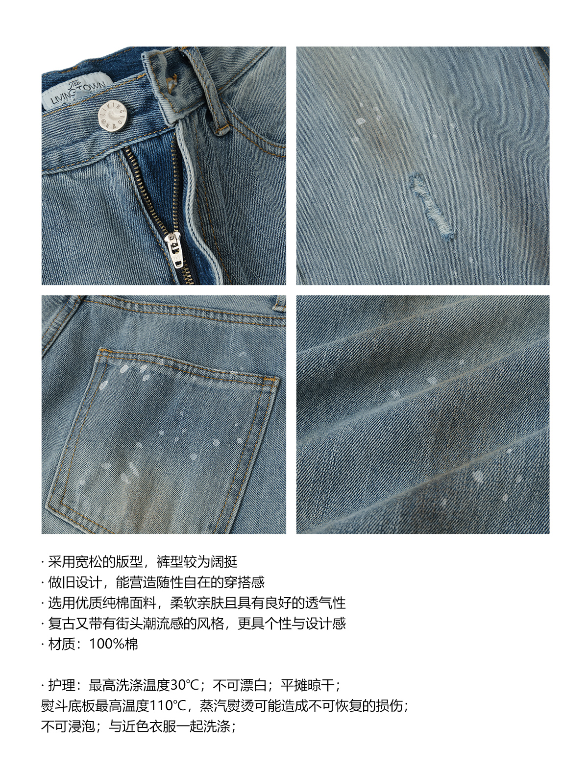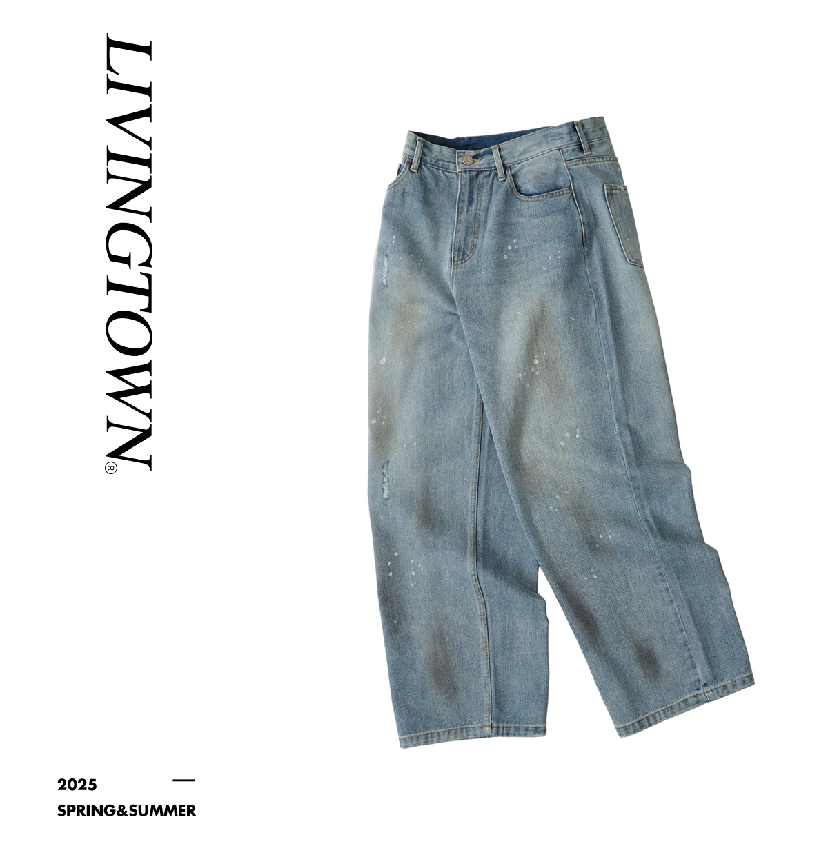 LIVINGTOWN/LT手工甩漆竹节纱牛仔裤