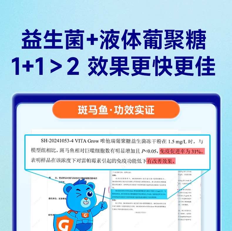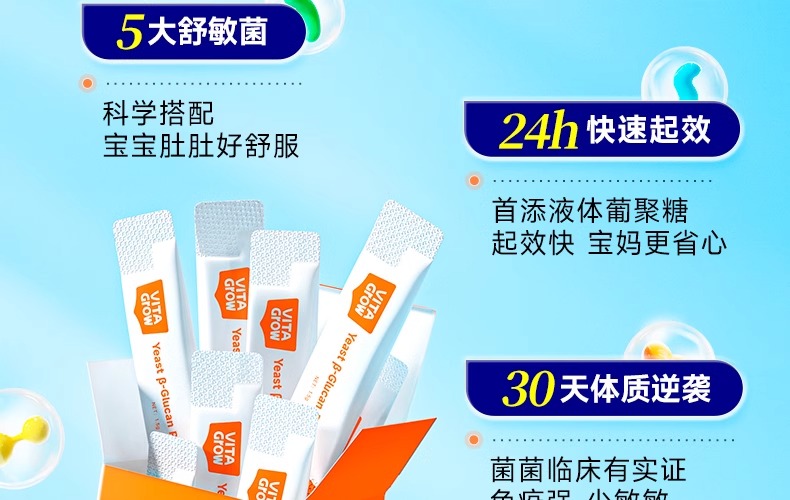 VITA Grow 葡聚糖益生菌 30条/盒 冻干粉剂换季过敏调理婴幼儿儿童肠道舒鼻免疫(效期至26/4)
