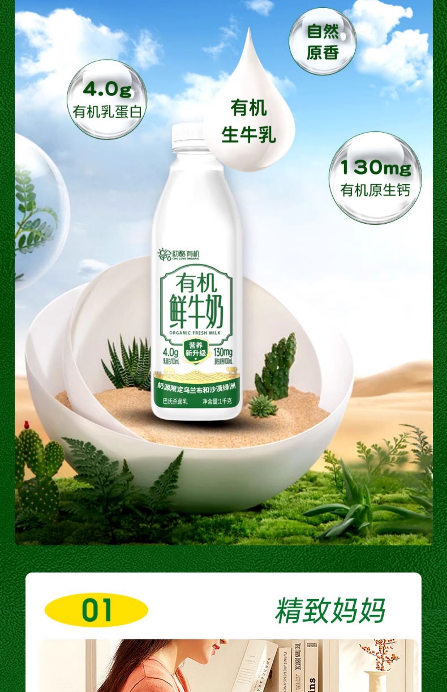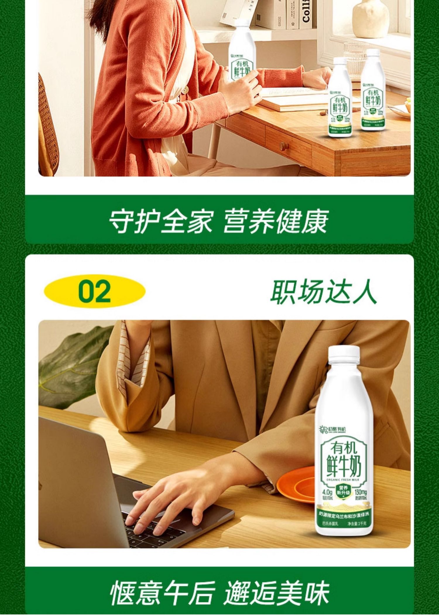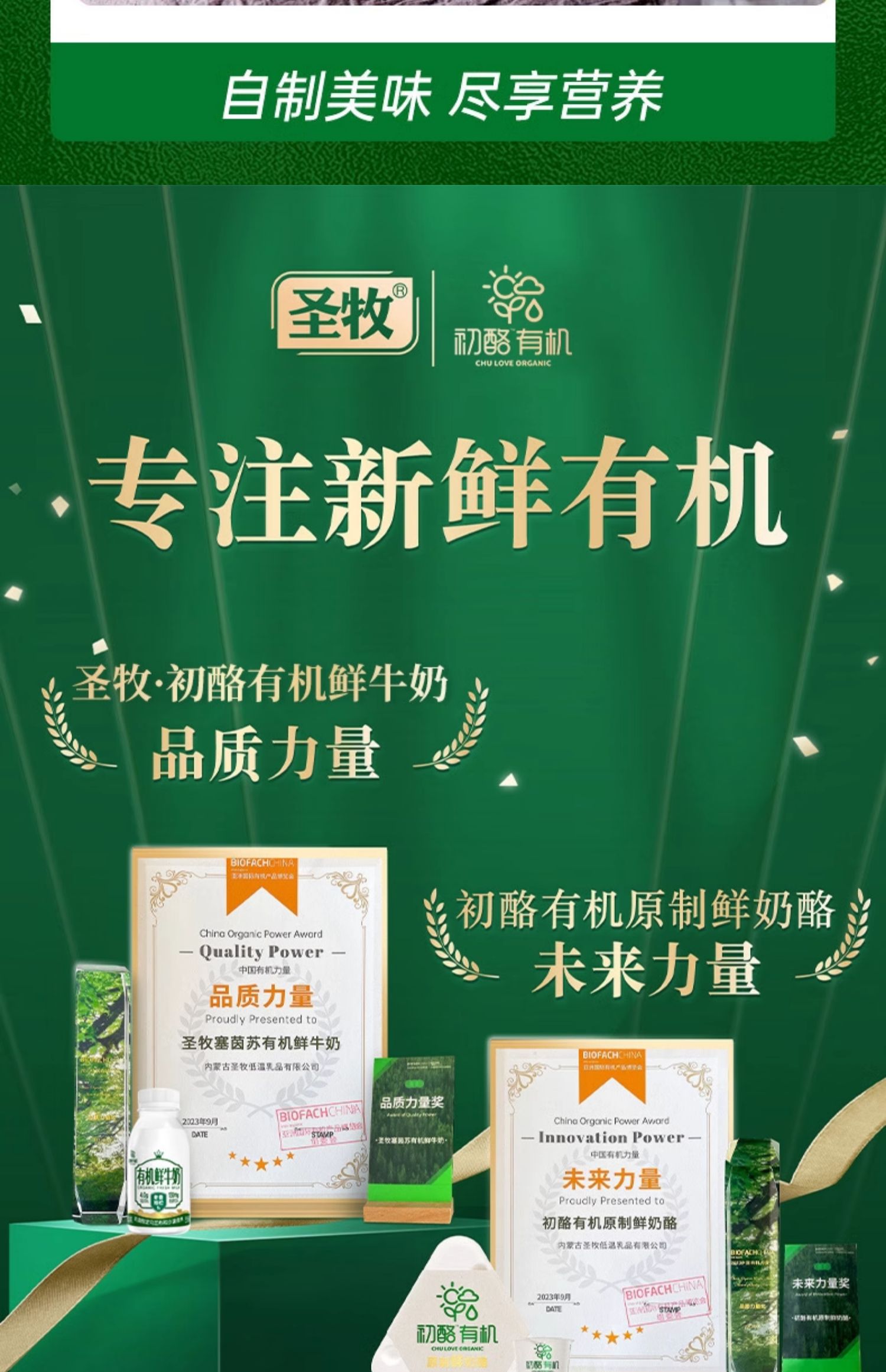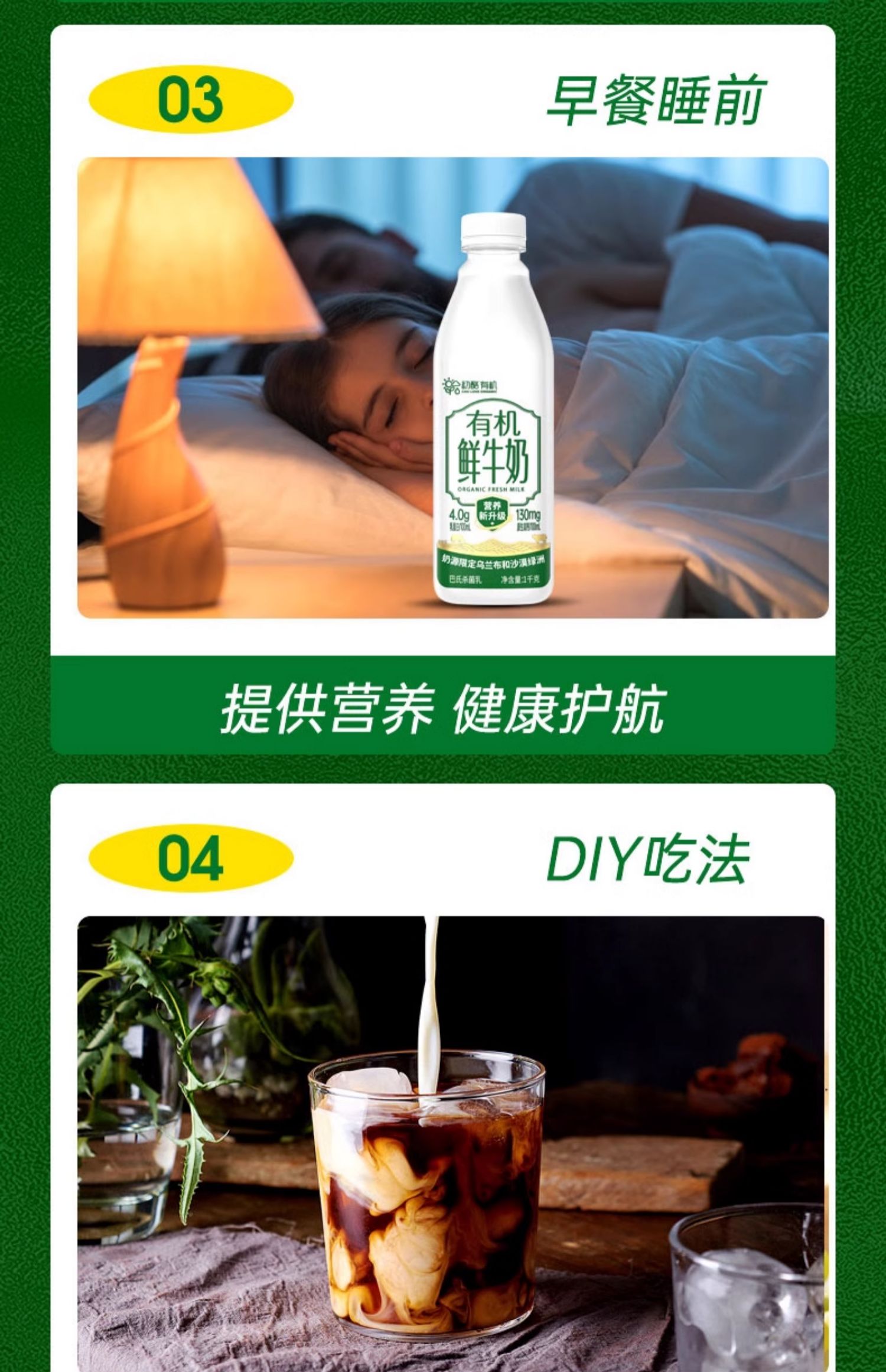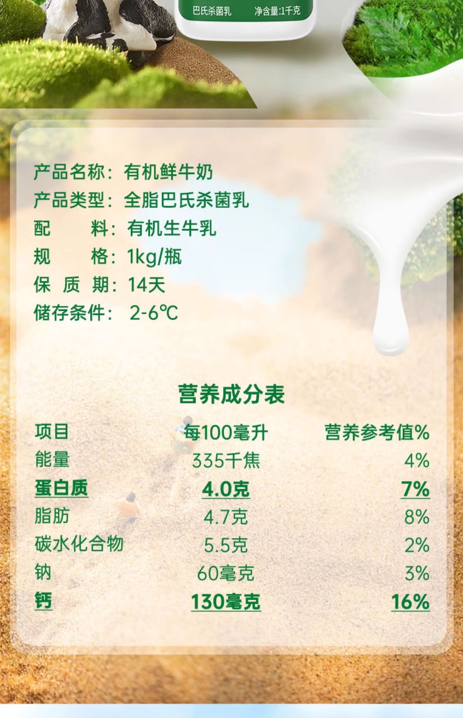 2瓶 圣牧有机鲜牛奶1KG*2瓶 A-4561