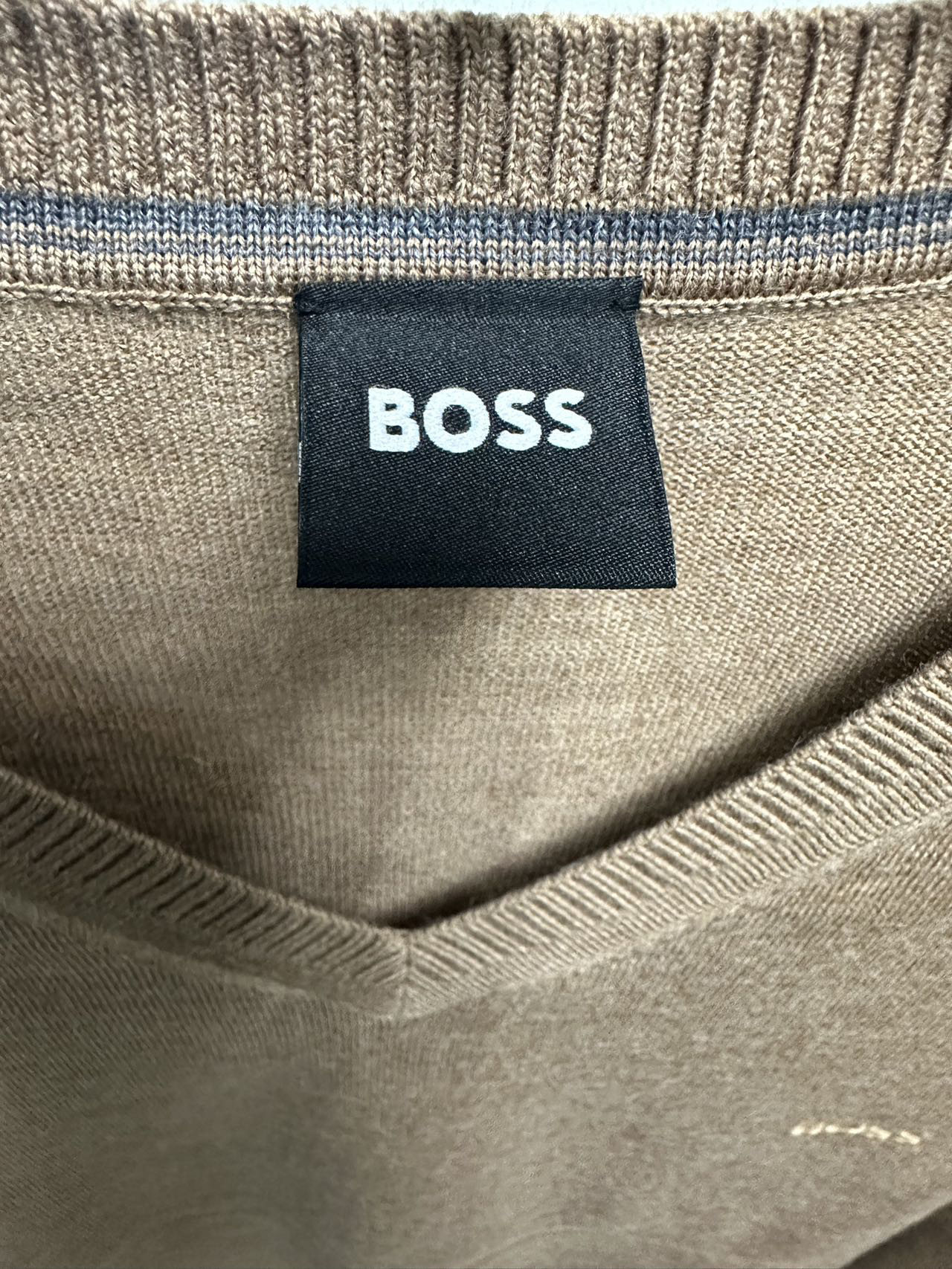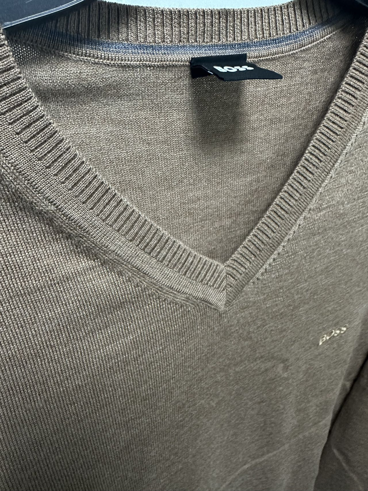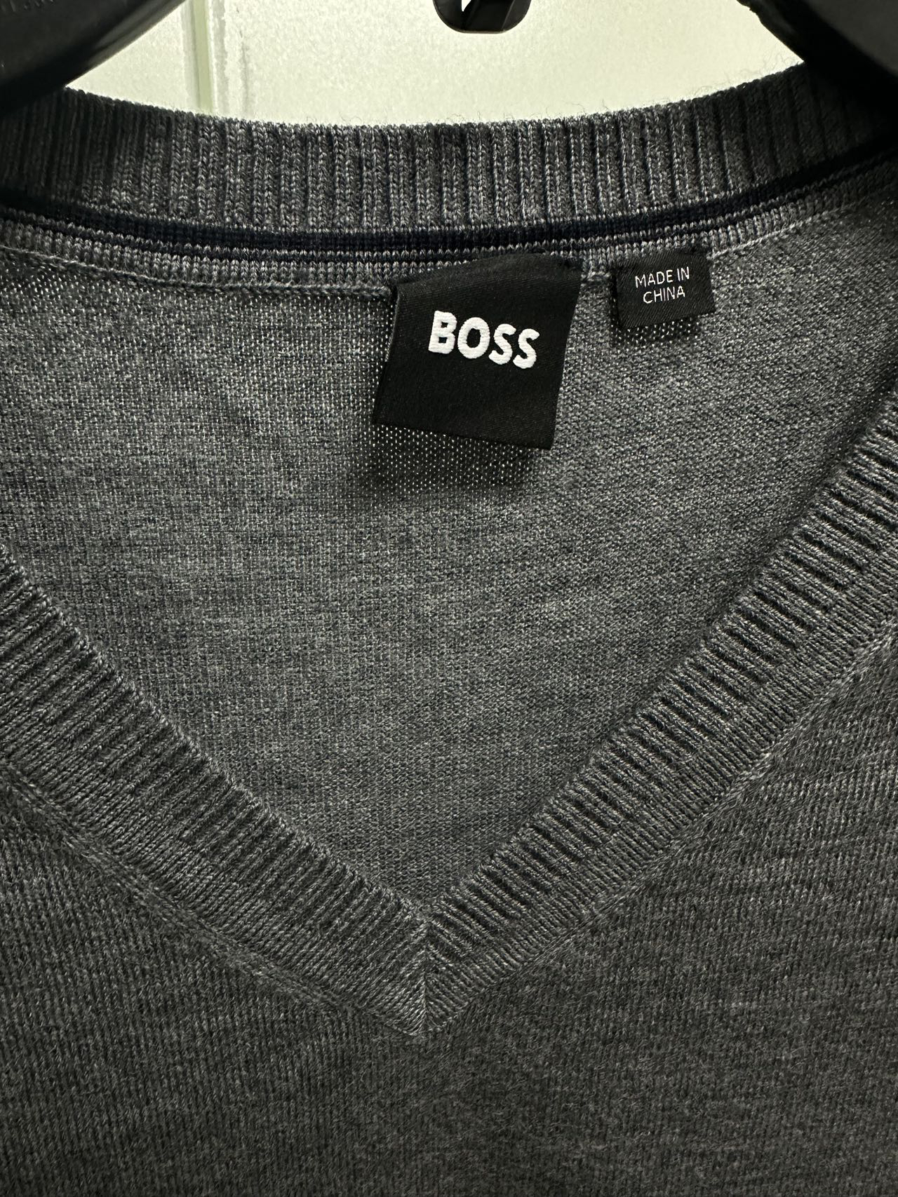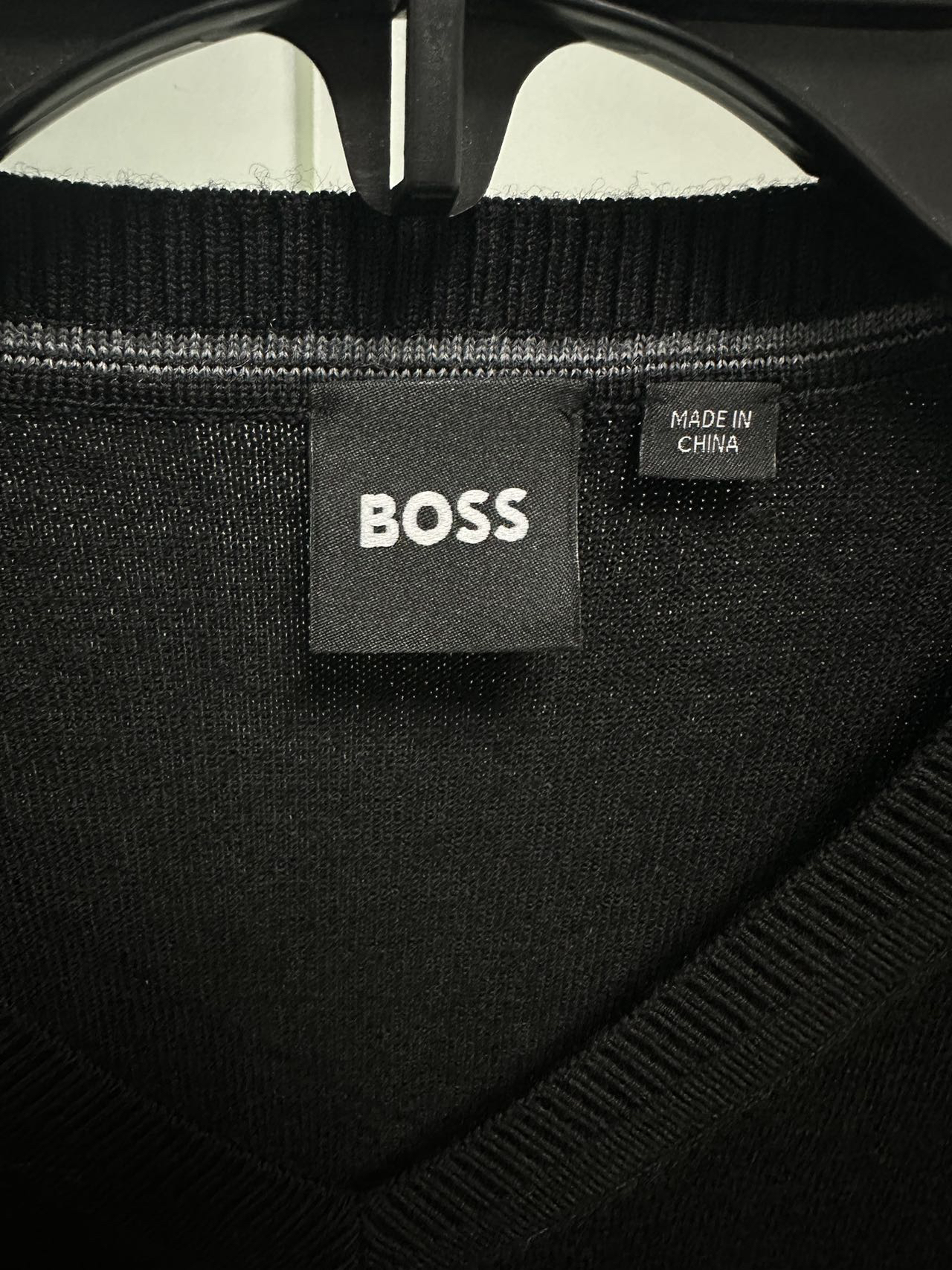 说明:HUGO BOSS德国一线。商务男装几乎无法绕开的牌子。100%纯新剪羊毛。手感软糯细腻光泽感强,同色系刺绣logo低调且质感强烈。经典V领,内搭衬衫,商务儒雅。内搭t恤帅气有型。直接贴身穿也非常棒,羊毛细腻触感好过所有保暖内衣。