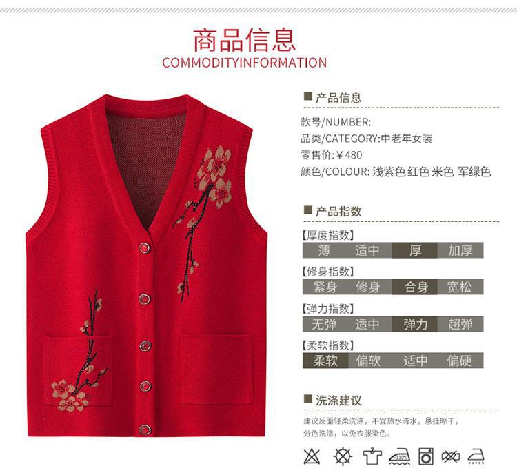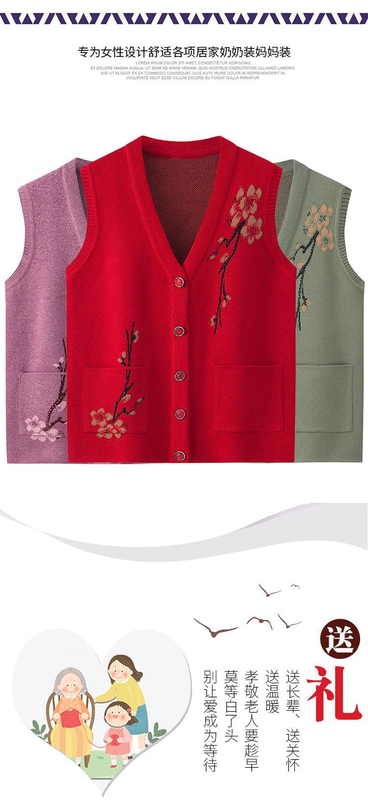 【老奶奶背心妈妈马甲】春秋老年人针织毛衣马夹 开衫中老年坎肩冬装