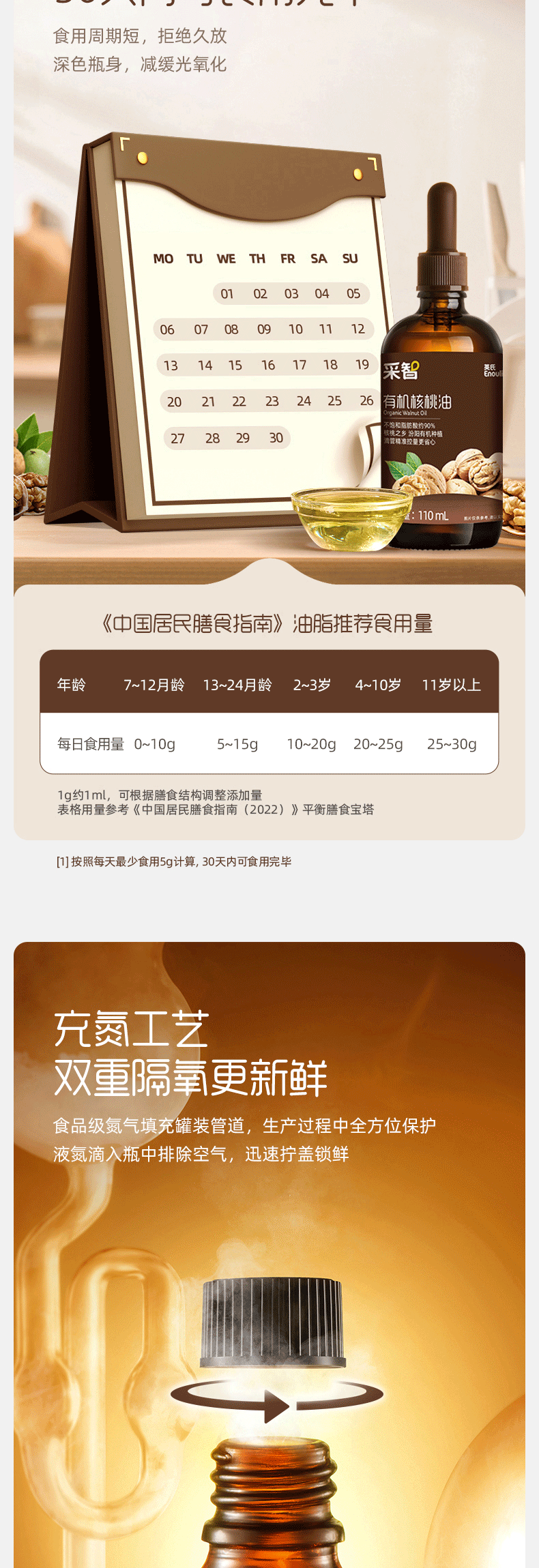 英氏有机核桃油冷榨辅食油110ml添加滴管/亚麻籽油/牛油果油【3件8折】(全场99元赠品3选1 /全场199元赠品4选1/全场299元赠品4选1)