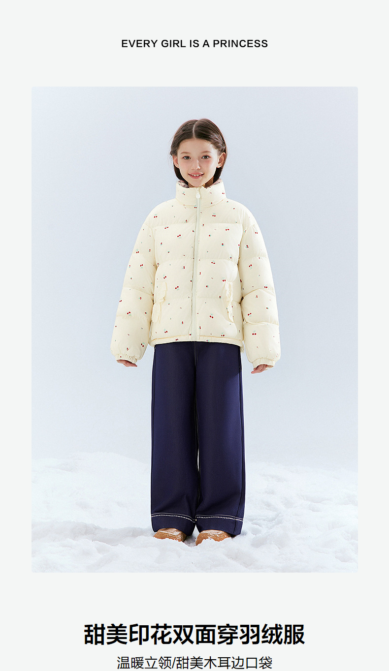 笛莎Deesha 童装女童羽绒服2025冬新款女童甜美印花双面穿羽绒服