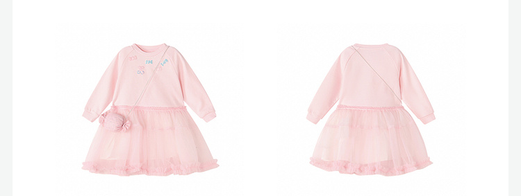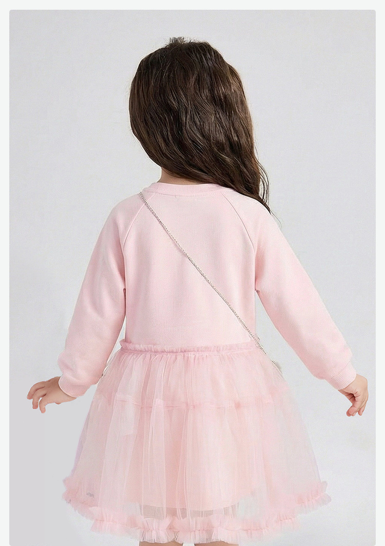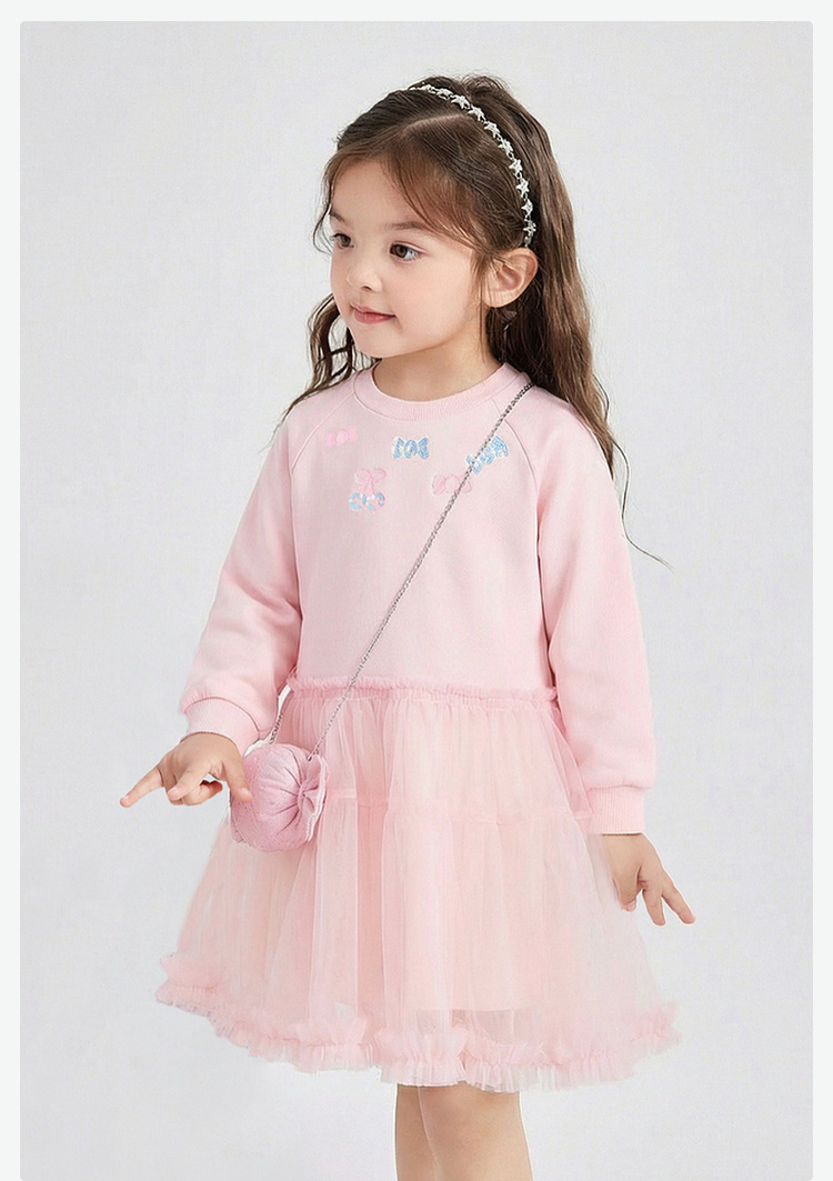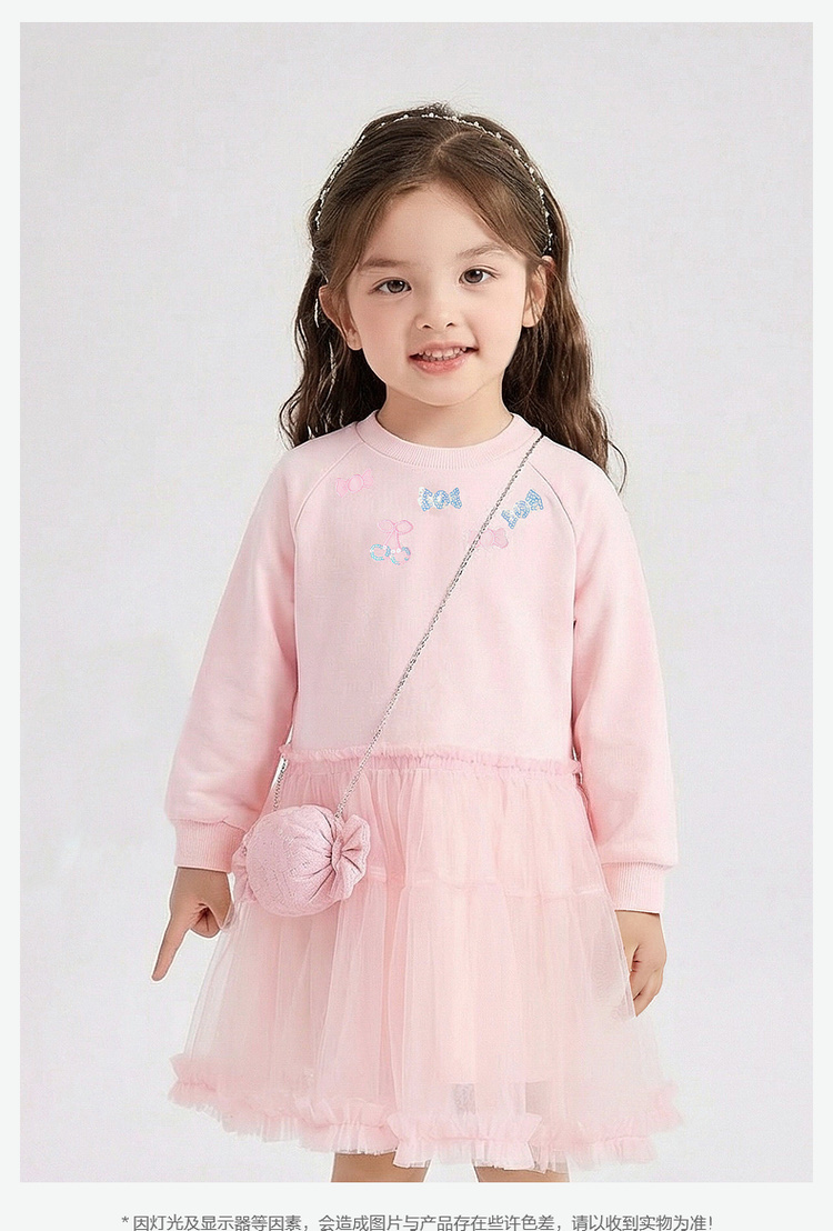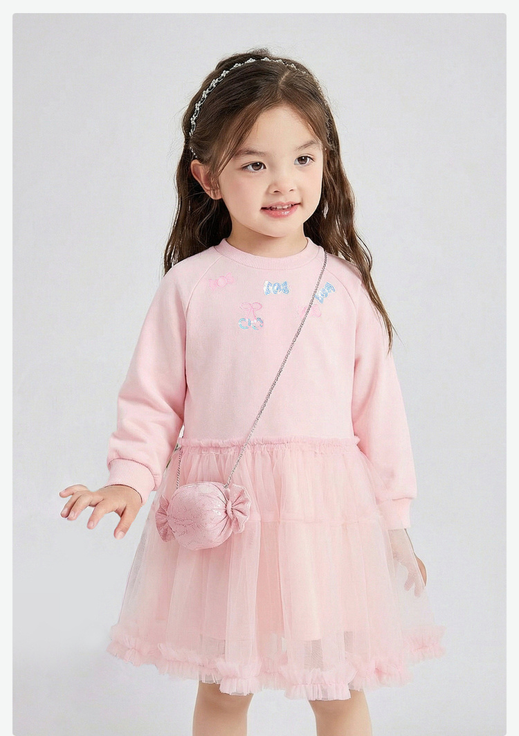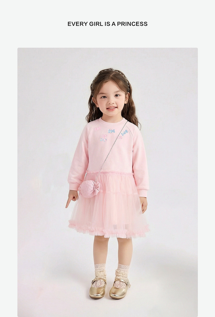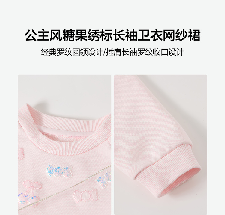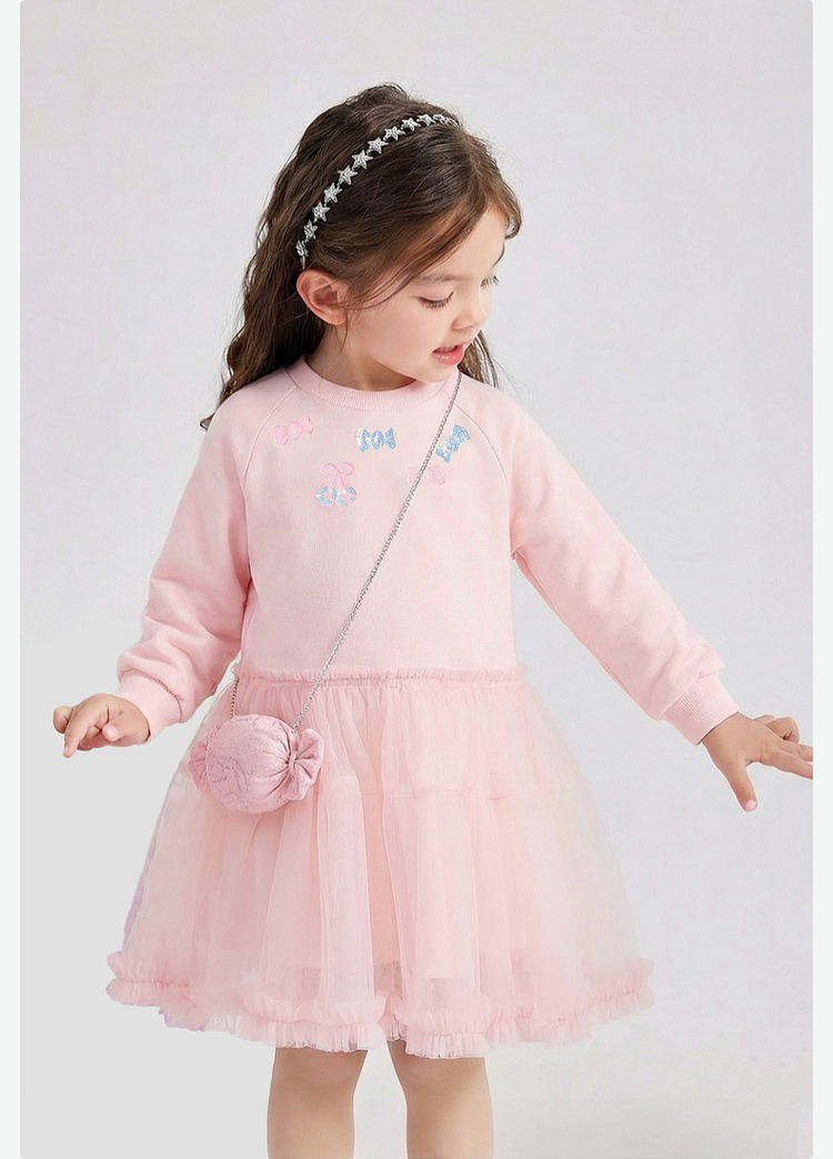 笛莎Deesha 童装女童连衣裙2026春新款公主风糖果绣标长袖卫衣网纱裙