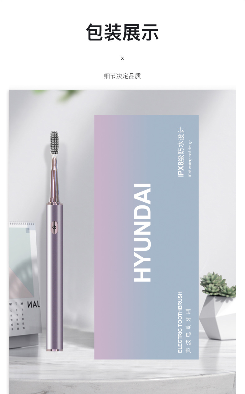 【高颜值设计 洁齿护龈】韩国现代HYUNDAI小冰棍电动牙刷 成人防水自动牙刷家用高颜值 赠刷头