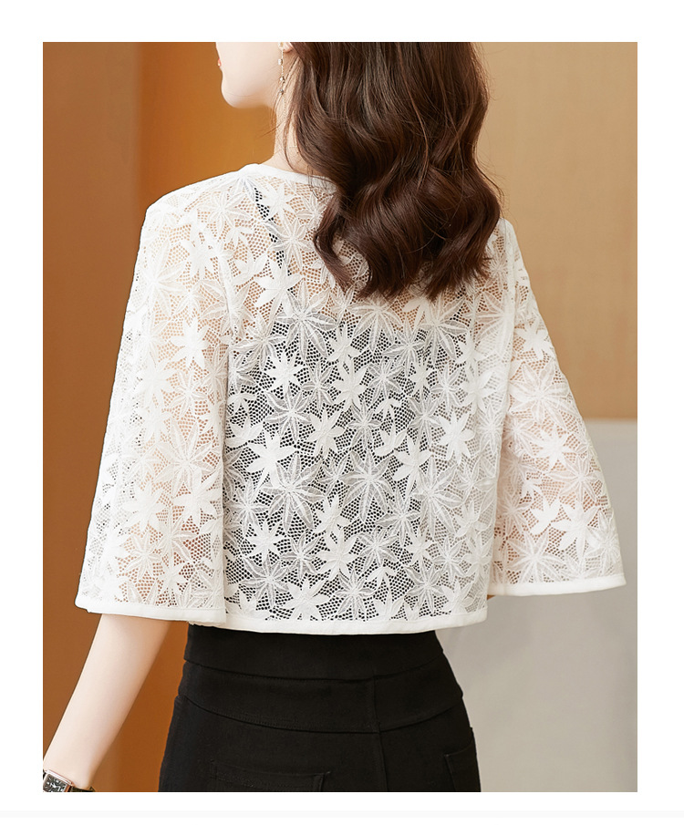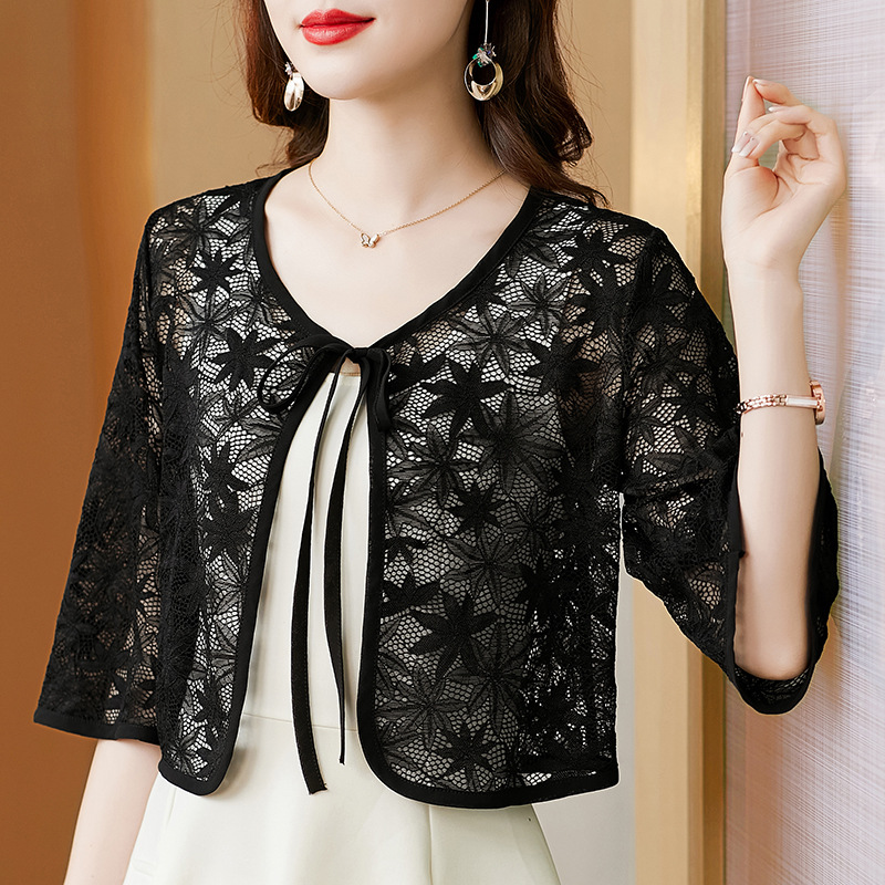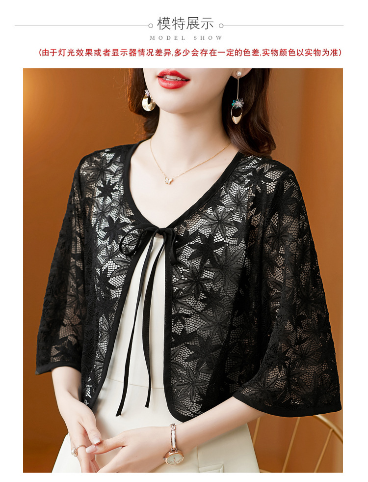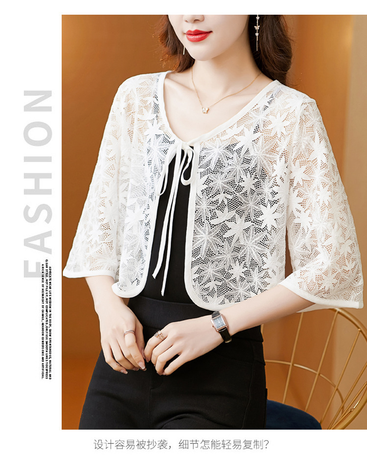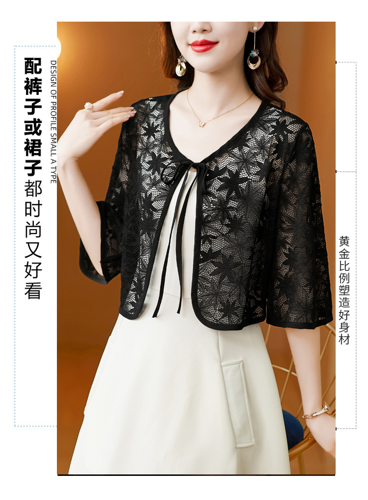蕾丝衫开衫系带纯色短外套气质小披肩 MZ801838