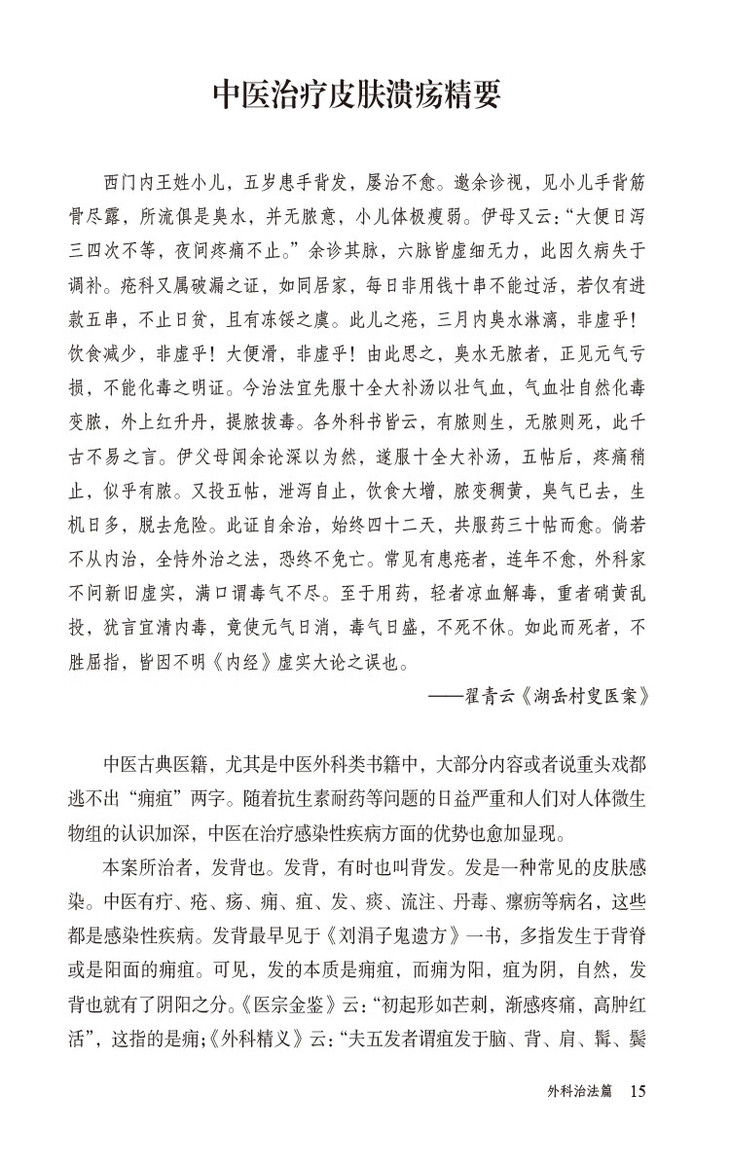 本书以古今中医外科代表性医案为切入点,结合西医学理念、个人临床经验,全面细致地讲解了中医外科拥有特色的诊疗思维和治疗方法,同时对医案体现出的核心学术思想和价值进行系统分析。本书内容全面翔实,切合临床,具有较强的实用性和指导意义,适合临床医生、中医院校学生、中医爱好者参考阅读。
