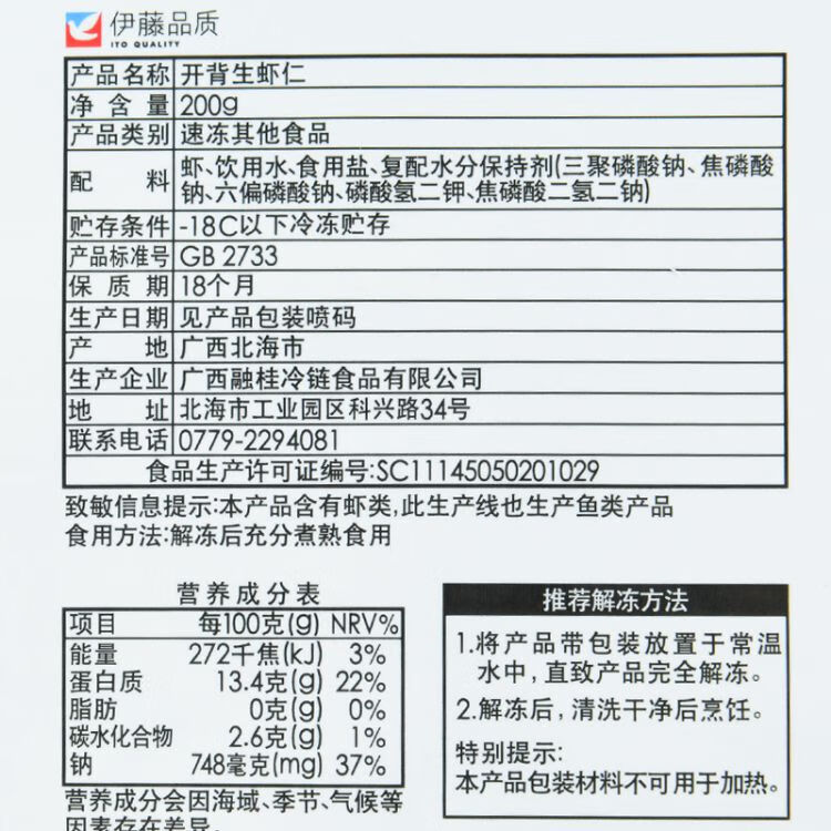 伊藤品质开背生虾仁200g/袋