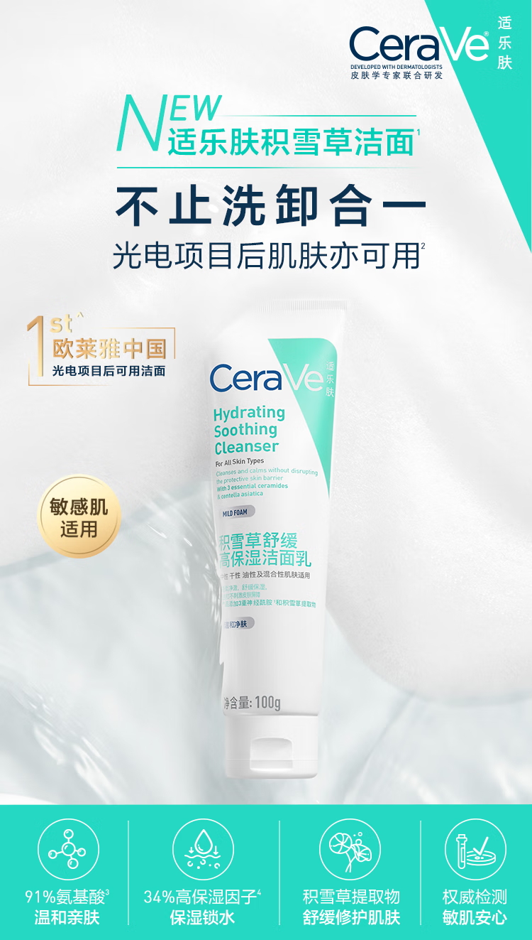适乐肤积雪草舒缓高保湿洁面乳 100g