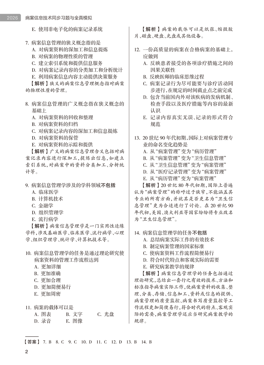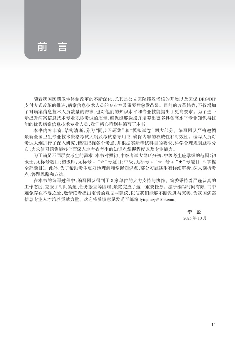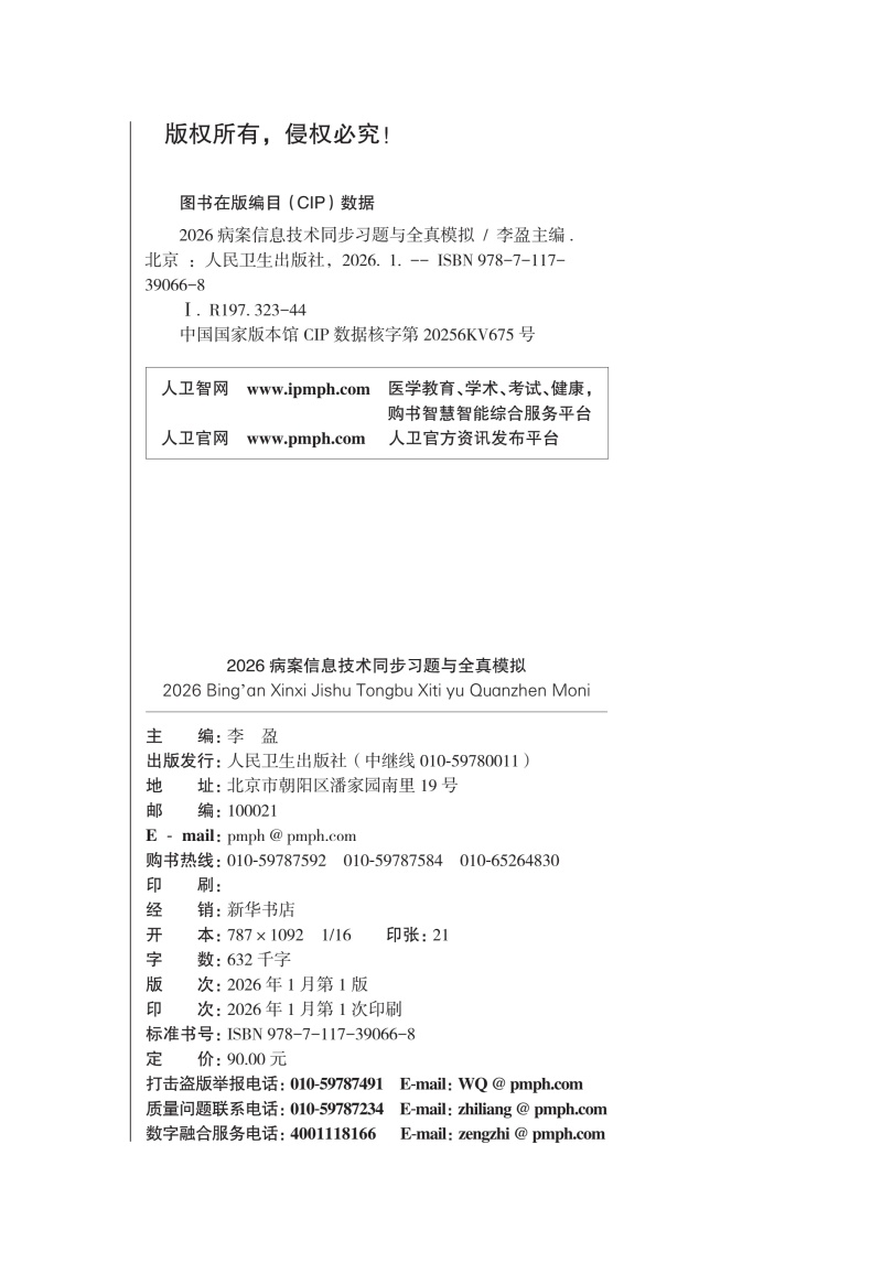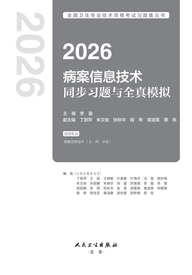 2026病案信息技术同步习题与全真模拟 全国卫生专业技术资格考试习题集丛书 李盈 适用病案信息技术(士、师、中级)人民卫生出版社