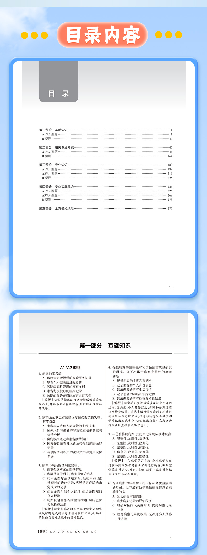 “全国卫生专业技术资格考试习题集丛书”以新考试大纲和全国卫生专业技术资格考试用书编写专家委员会编写的考试指导为依据,编写工作遵循科学、严谨、客观、规范的原则,严格按照实际考试的科目划分和题型分布进行编写,切实考查考生对知识点的掌握程度和专业水平。本系列丛书包括《同步习题与全真模拟》《同步习题集》《模拟试卷》等,能够有效帮助考生考前复习、自测和反馈学习成果。《同步习题与全真模拟》中的同步习题部分按考试指导的章节编写,题型全面,题量丰富,涵盖考试大纲的所有知识点,突出重点、难点;模拟试卷部分试题难度和题型分布参考实际考试情况设定,仿真度高,用于考生考前自测。