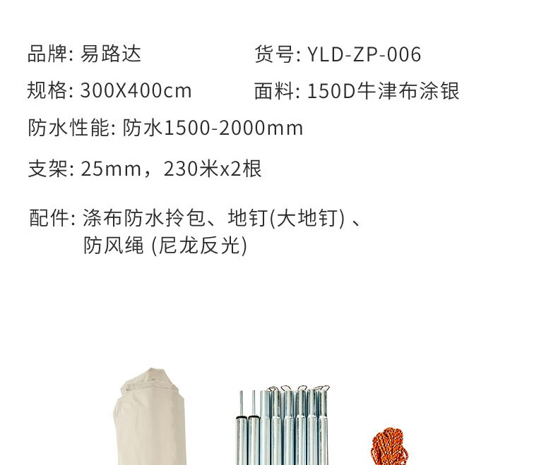 易路达 乐途户外多人天幕 YLD-ZP-006