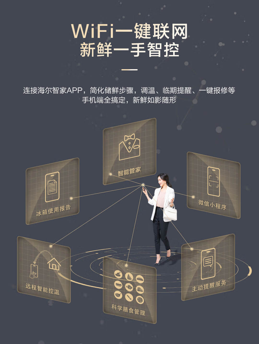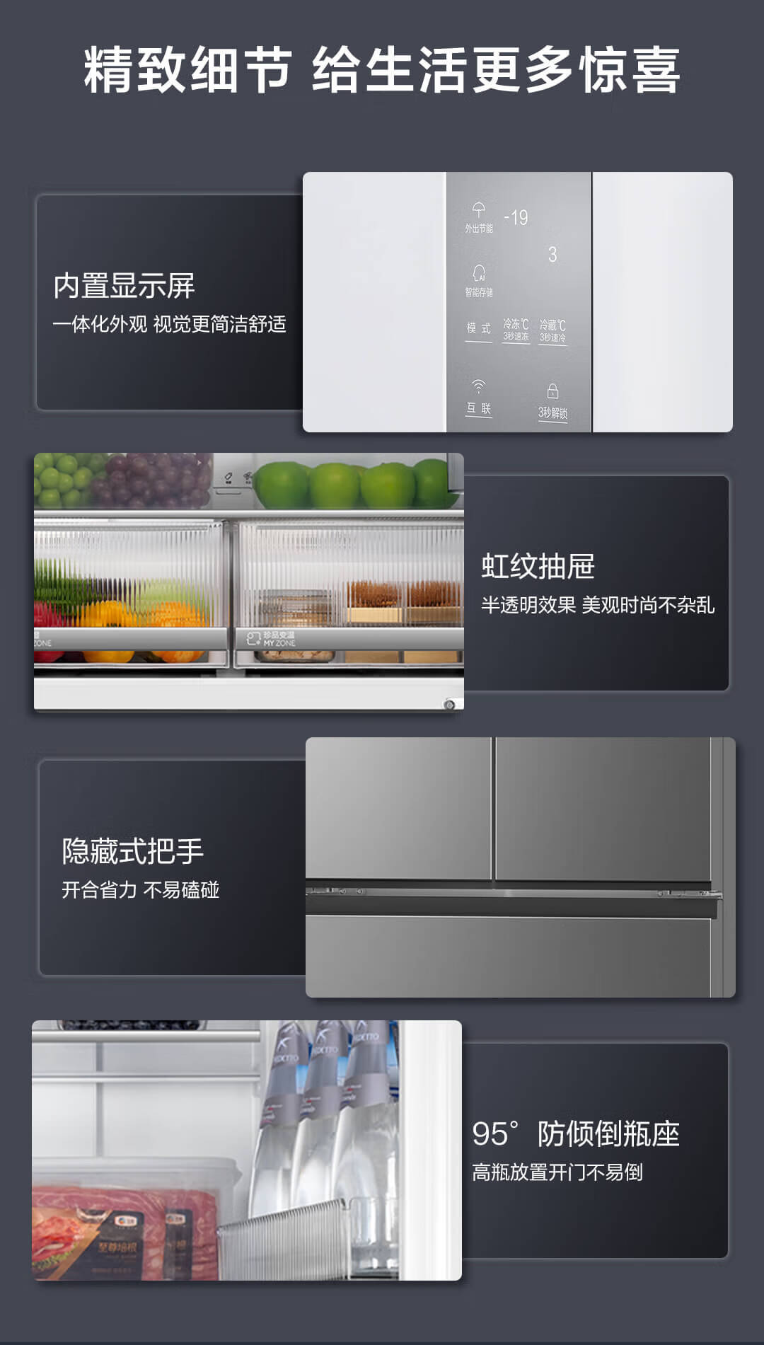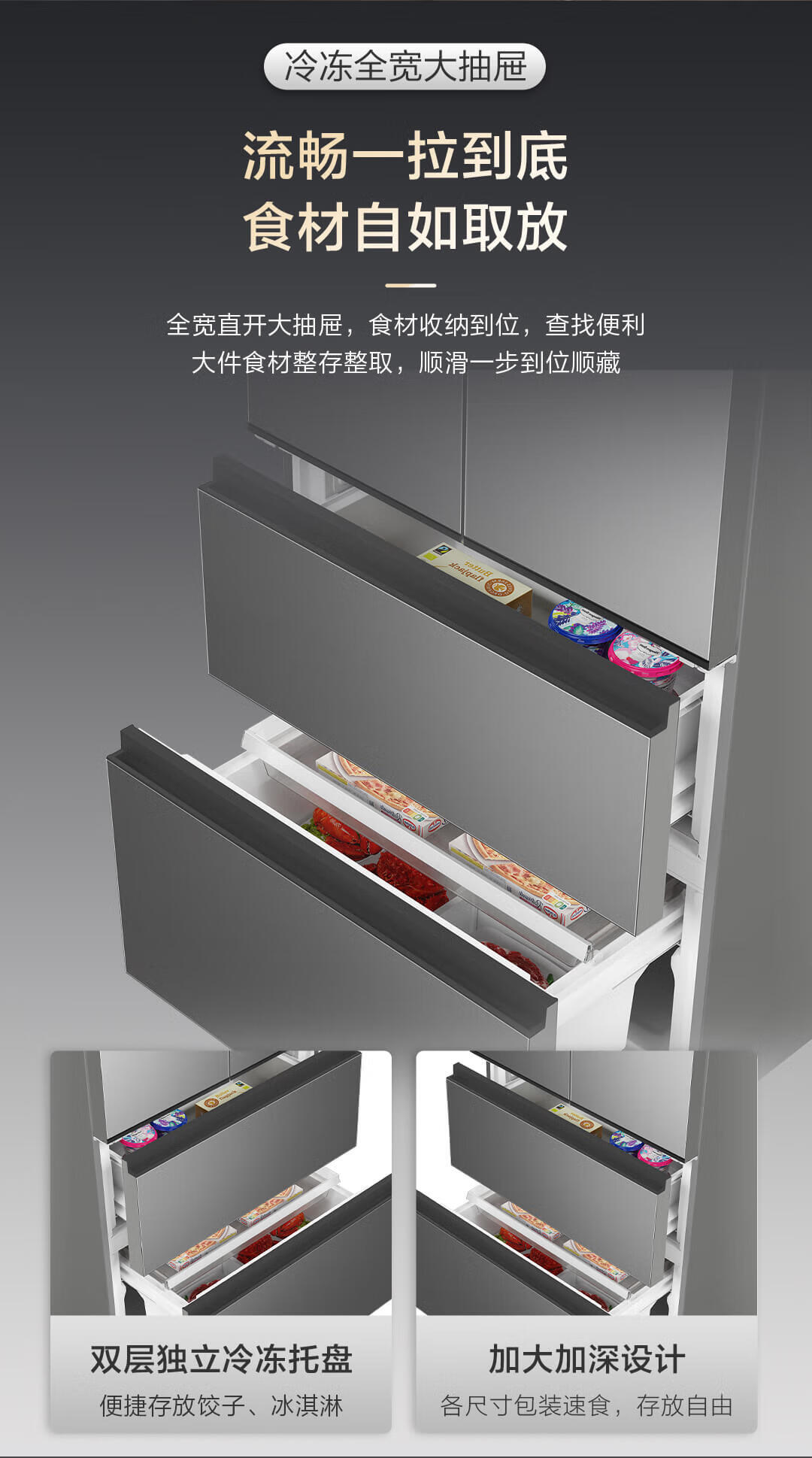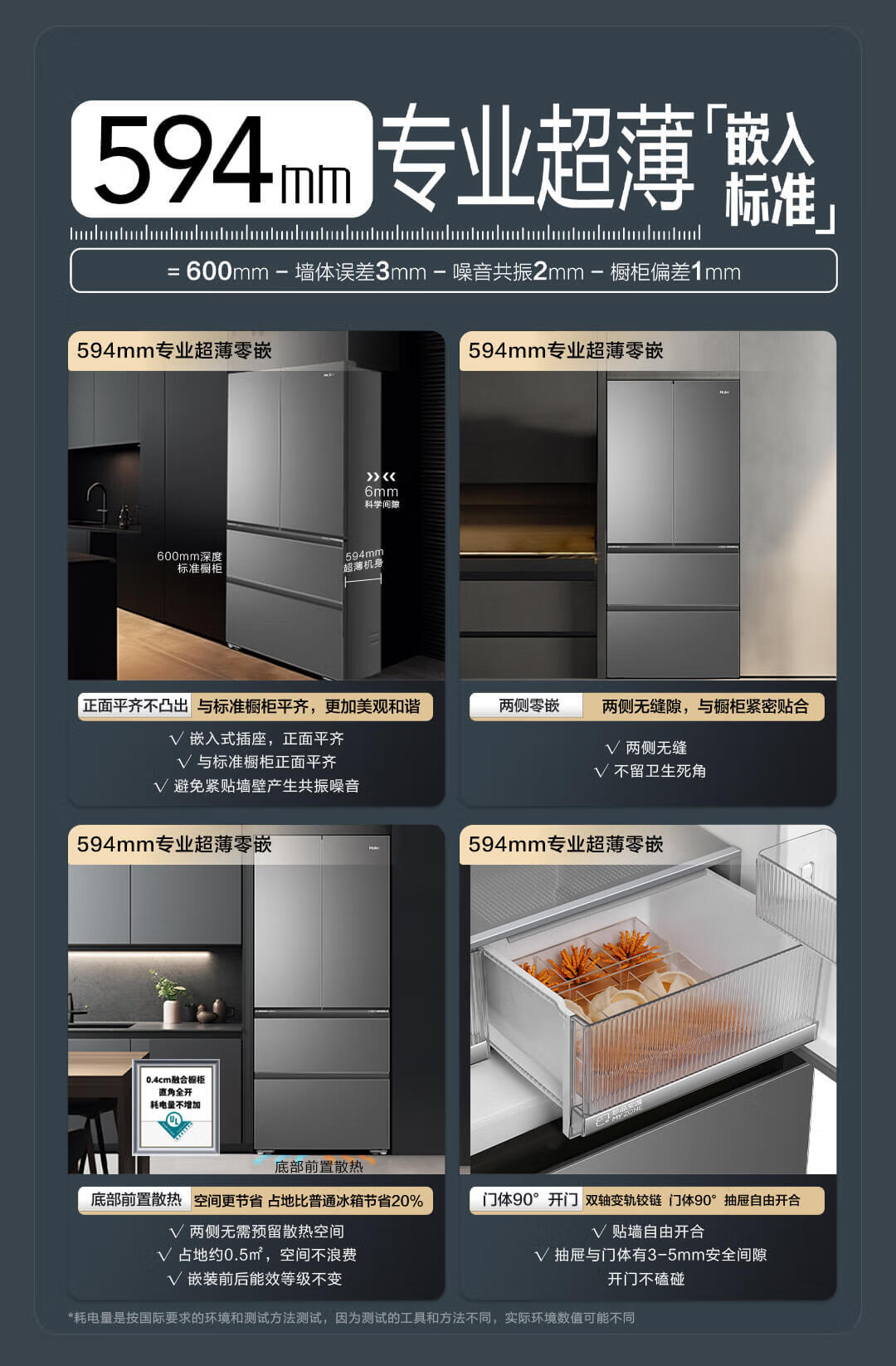 海尔 491L 法式多门家用电冰箱 大容量 前置散热 594mm超薄零嵌 干湿分储 黑金净化 一级双变频 wifi智控 博卡灰皮纹 BCD-491WGHFDB5BFU1