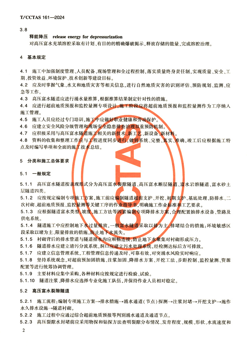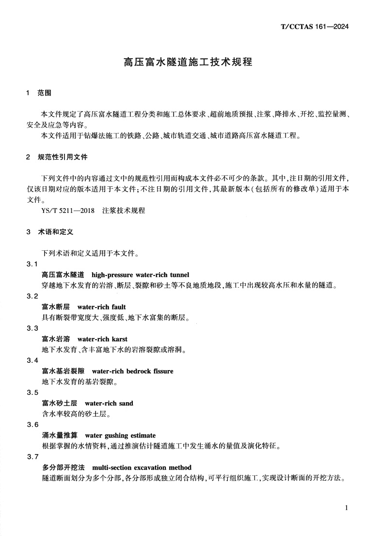 高压富水隧道施工技术规程T/CCTAS 161—2024