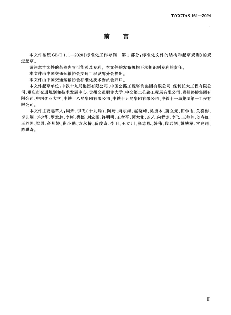 书名:高压富水隧道施工技术规程T/CCTAS 161—2024
