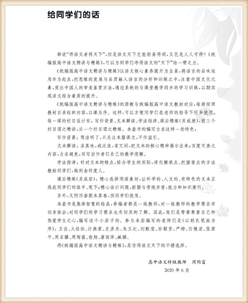 赢定985 统编版高中语文精讲与精练 必修 上册 课文精讲+课后精练+期末真卷 针对统编本 瞄准新高考 精编阅读题 复旦大学出版社