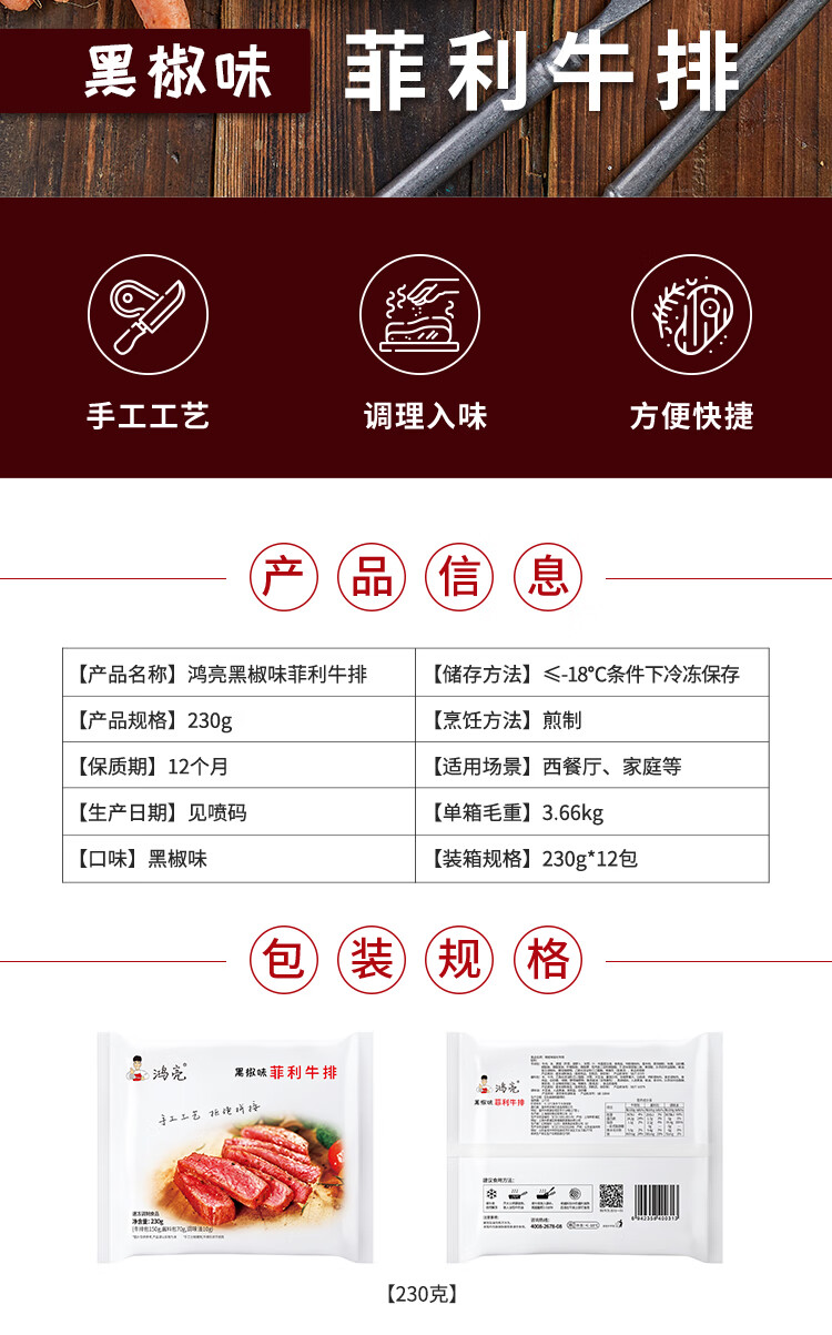 鸿亮黑椒味菲利牛排230g菲力牛排(新老包装随机发货)