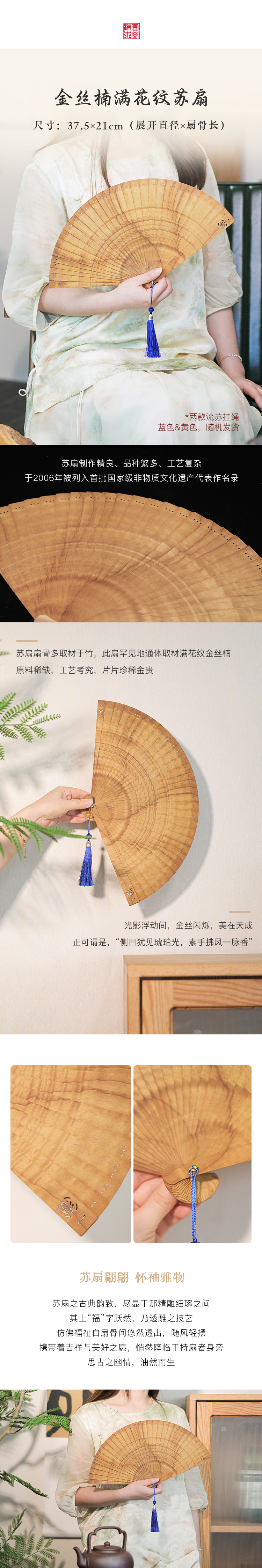 金丝楠木雅玩满花纹苏扇